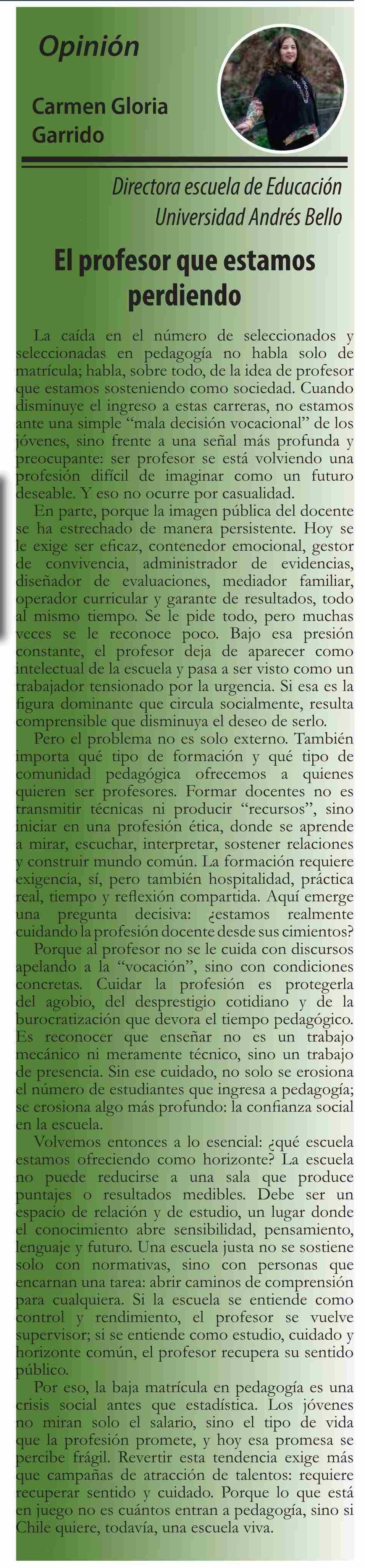 Columnas de Opinión: El profesor que estamos perdiendo
