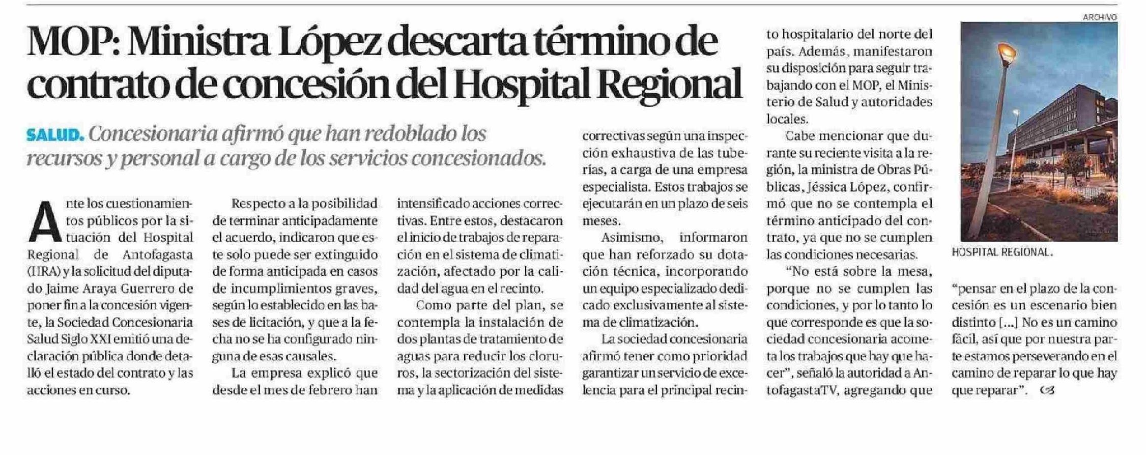 MOP: Ministra López descarta término de contrato de concesión del Hospital Regional