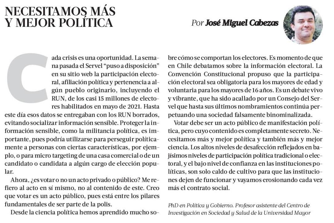 NECESITAMOS MÁS Y MEJOR POLÍTICA