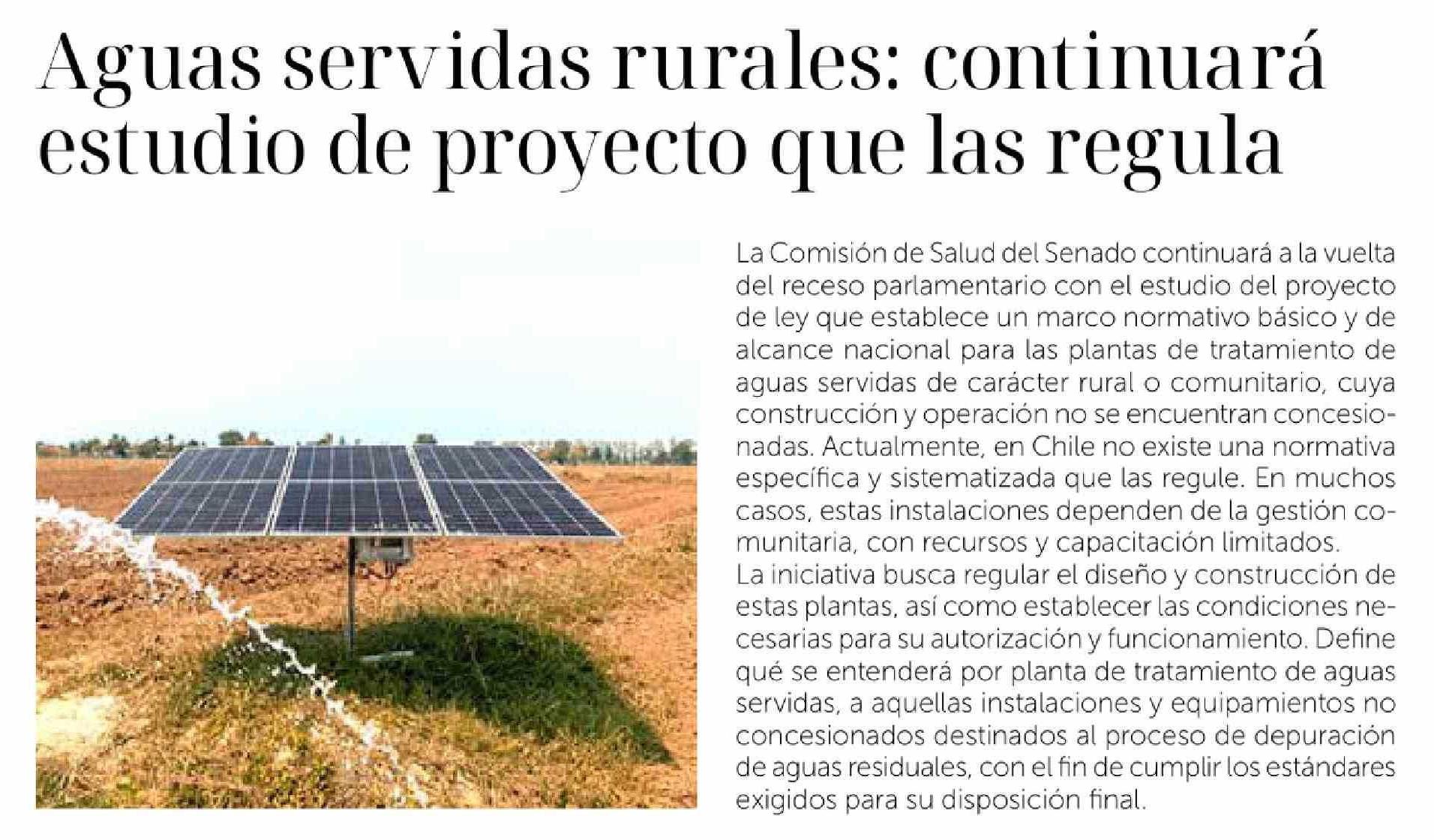 Aguas servidas rurales: continuará estudio de proyecto que las regula