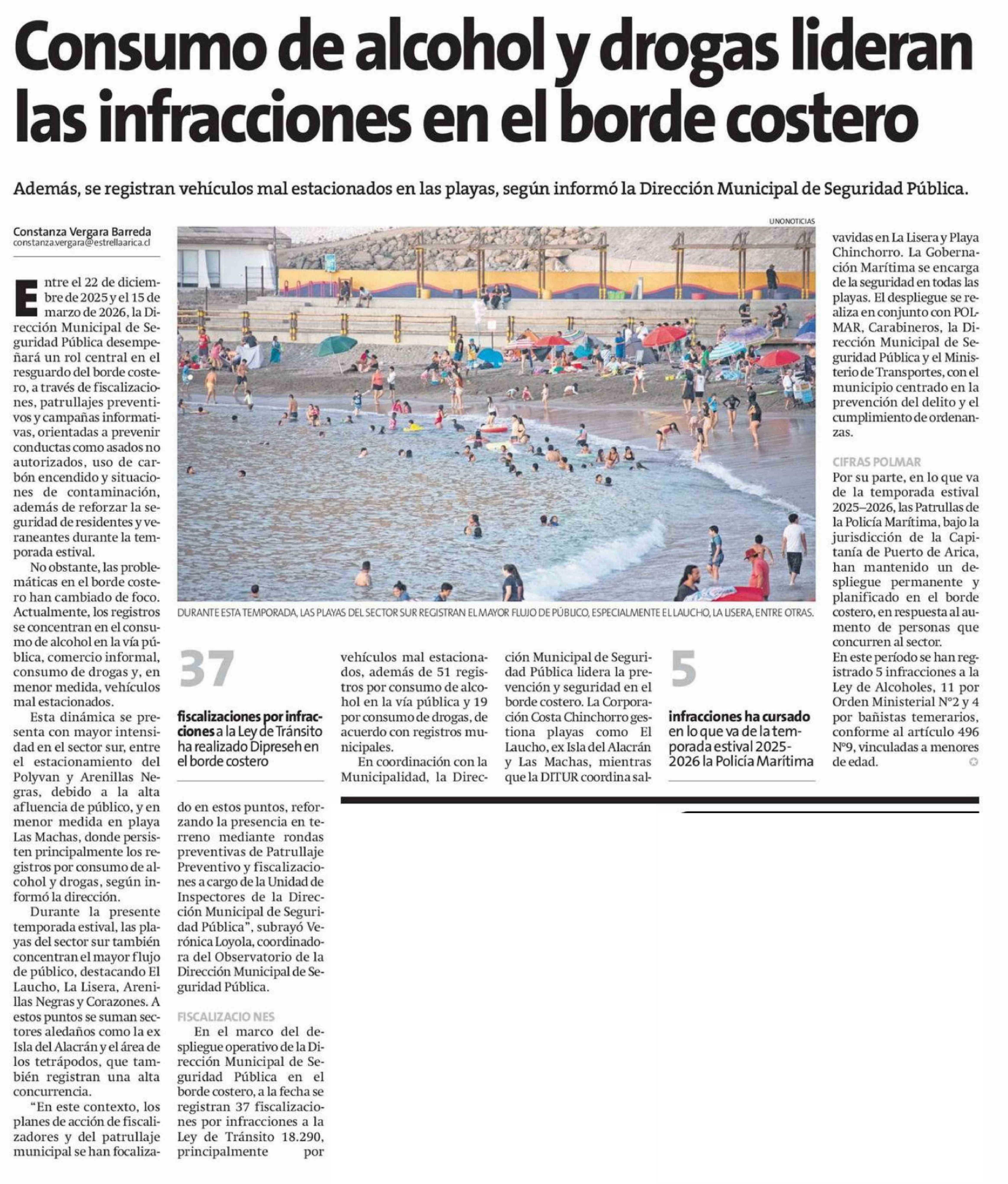Consumo de alcohol y drogas lideran las infracciones en el borde costero