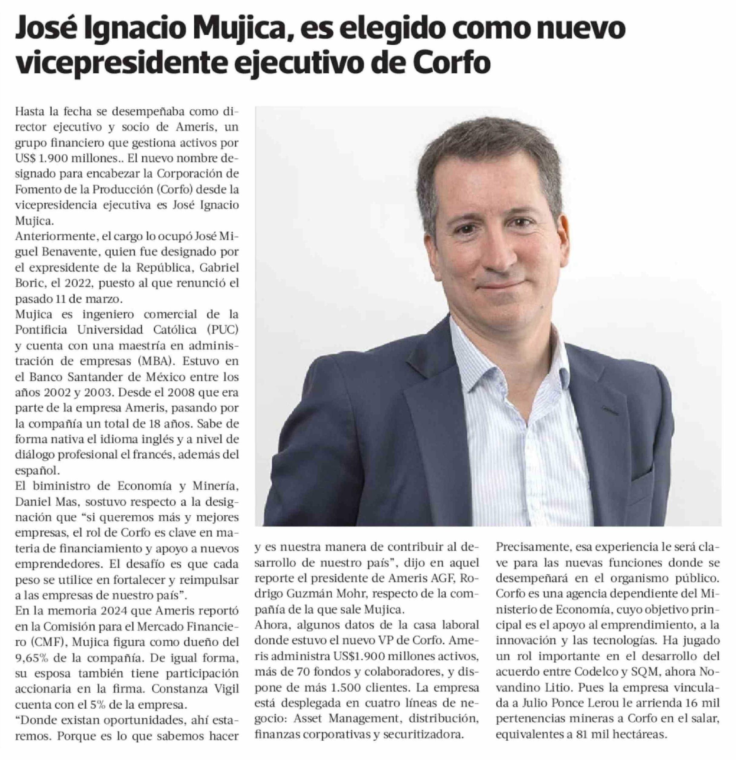 José Ignacio Mujica, es elegido como nuevo vicepresidente ejecutivo de Corfo