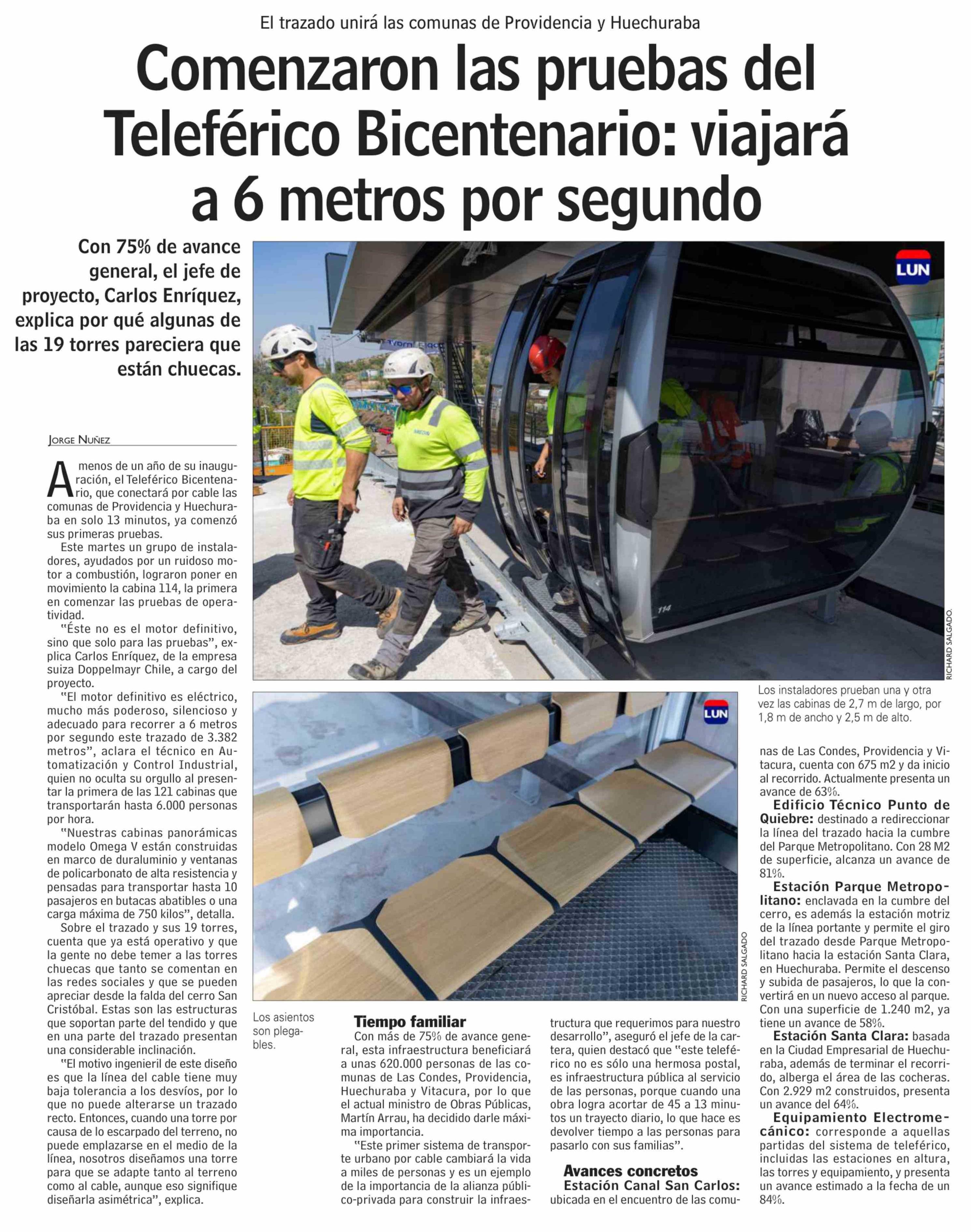Comenzaron las pruebas del Teleférico Bicentenario: viajará a 6 metros por segundo