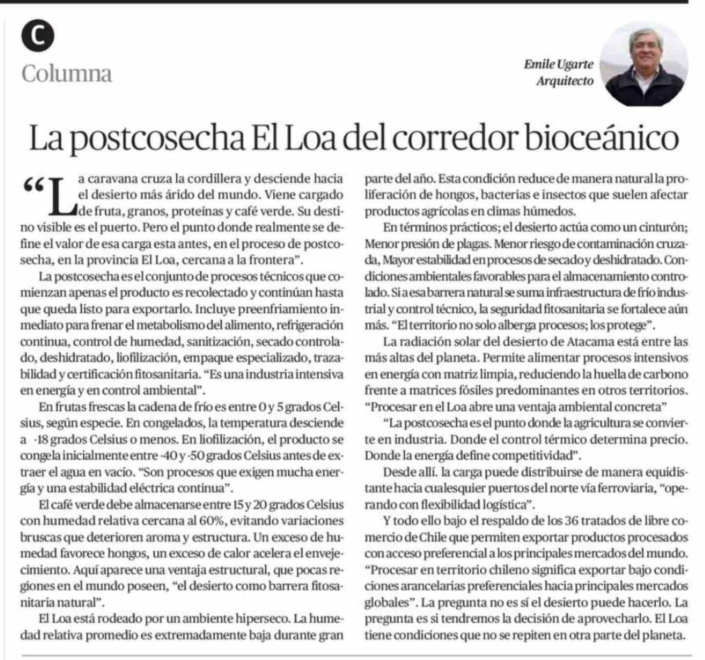 Columnas de Opinión: La postcosecha El Loa del corredor bioceánico