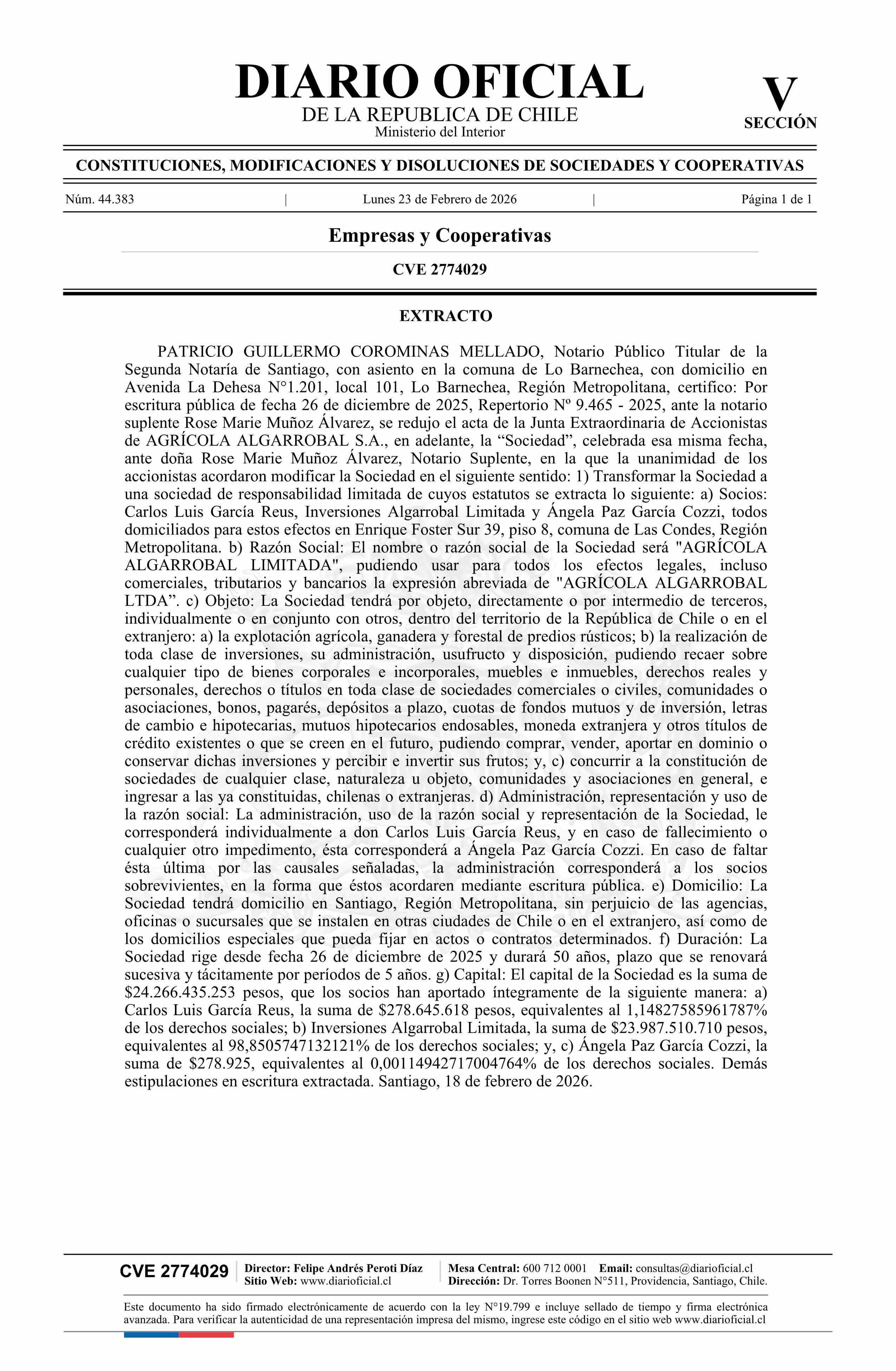 AGRÍCOLA ALGARROBAL S.A. 78.954.820-K