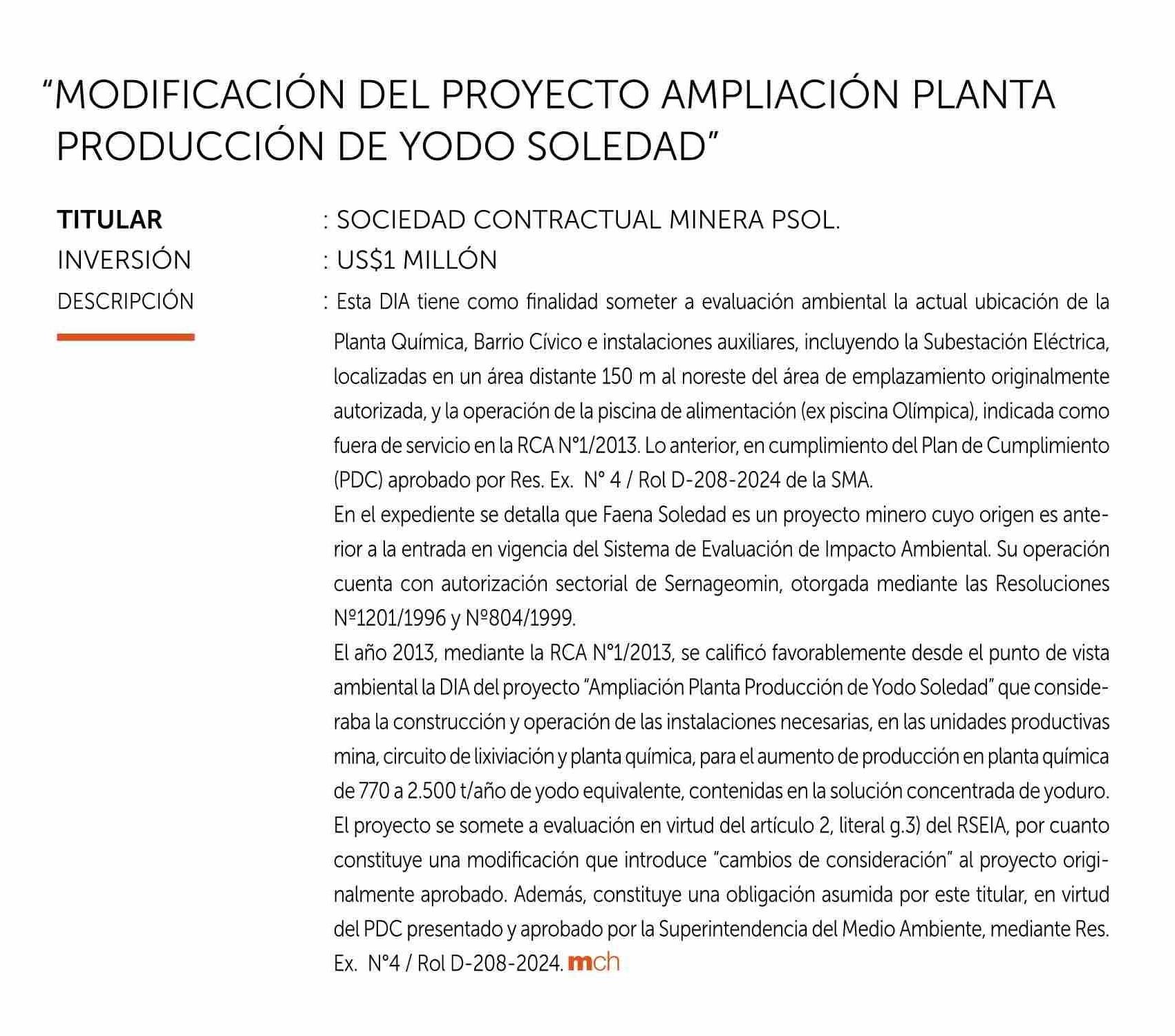 “MODIFICACIÓN DEL PROYECTO AMPLIACIÓN PLANTA PRODUCCIÓN DE YODO SOLEDAD”