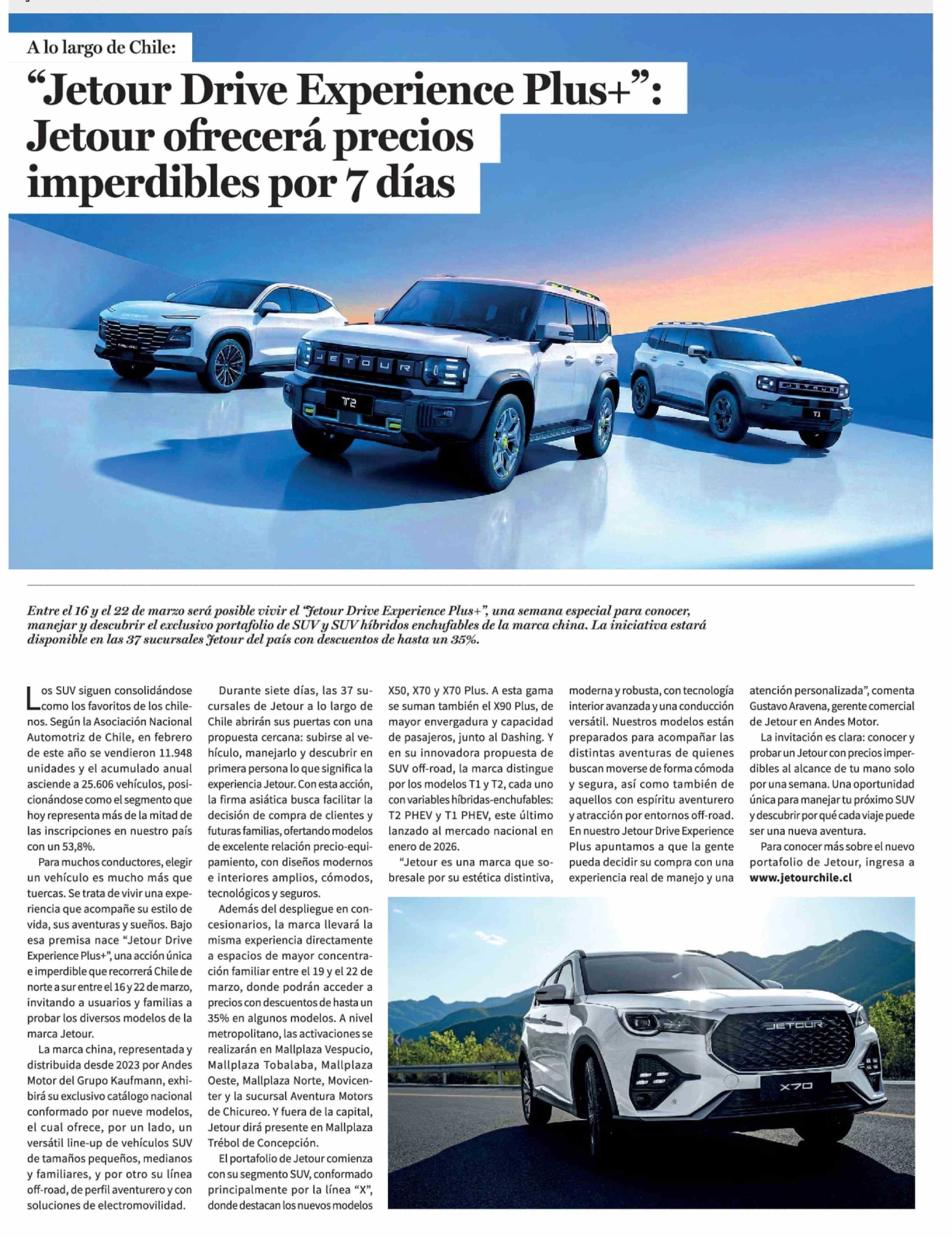 "Jetour Drive Experience Plus+": Jetour ofrecerá precios imperdibles por 7 días