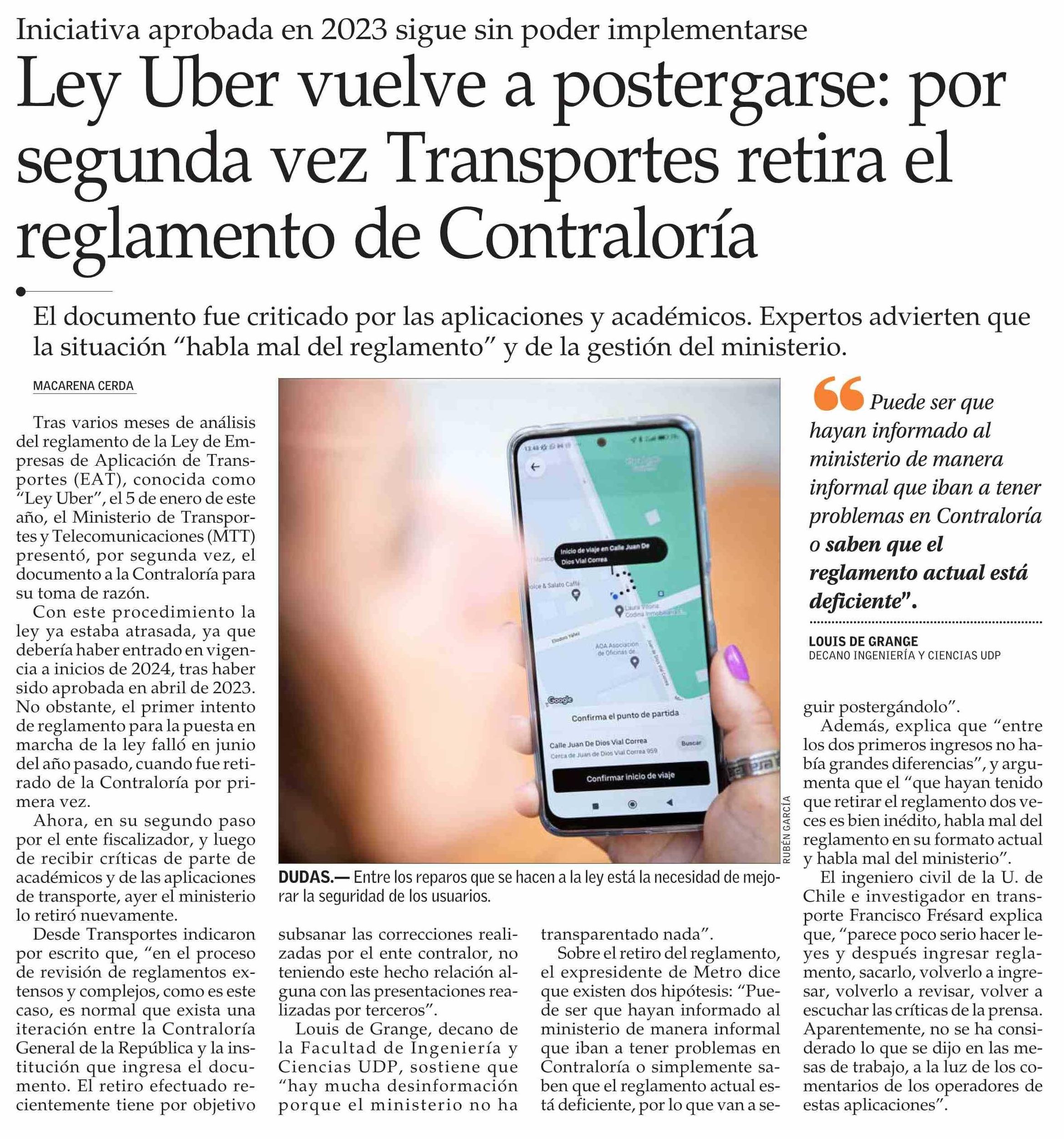 Ley Uber vuelve a postergarse: por segunda vez Transportes retira el reglamento de Contraloría