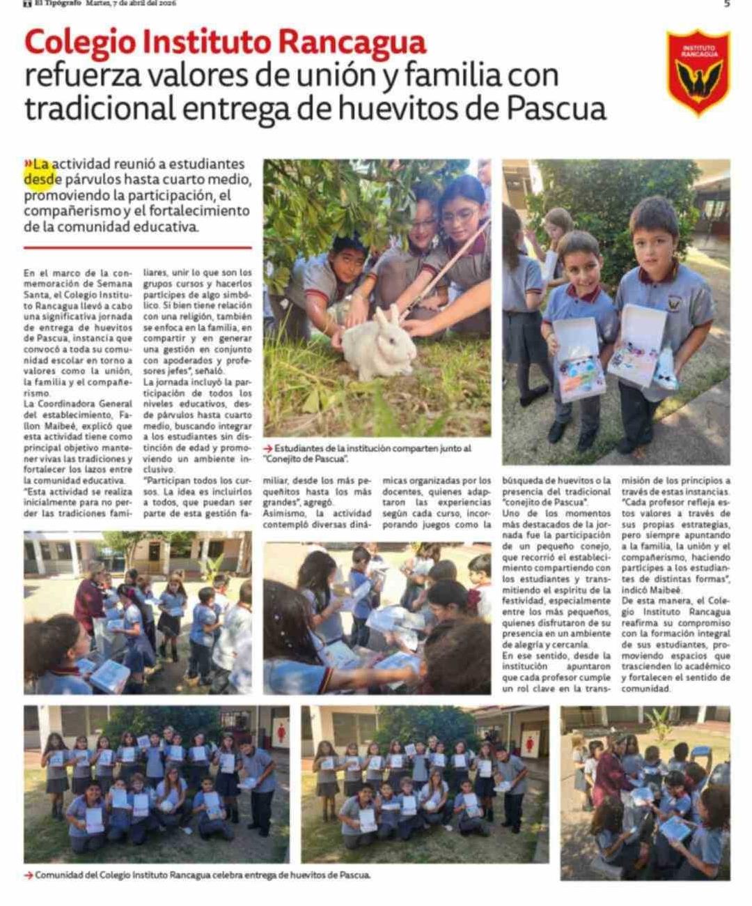 Colegio Instituto Rancagua refuerza valores de unión y familia con tradicional entrega de huevitos de Pascua