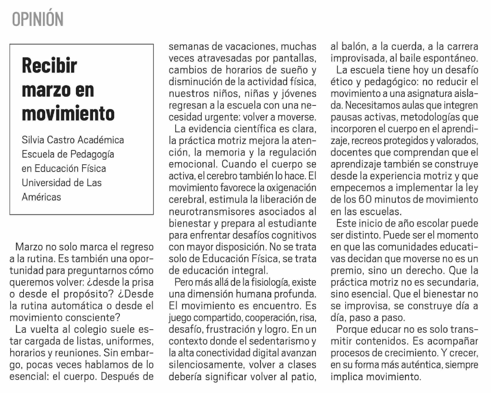 Título: Columnas de Opinión: Recibir marzo en movimiento