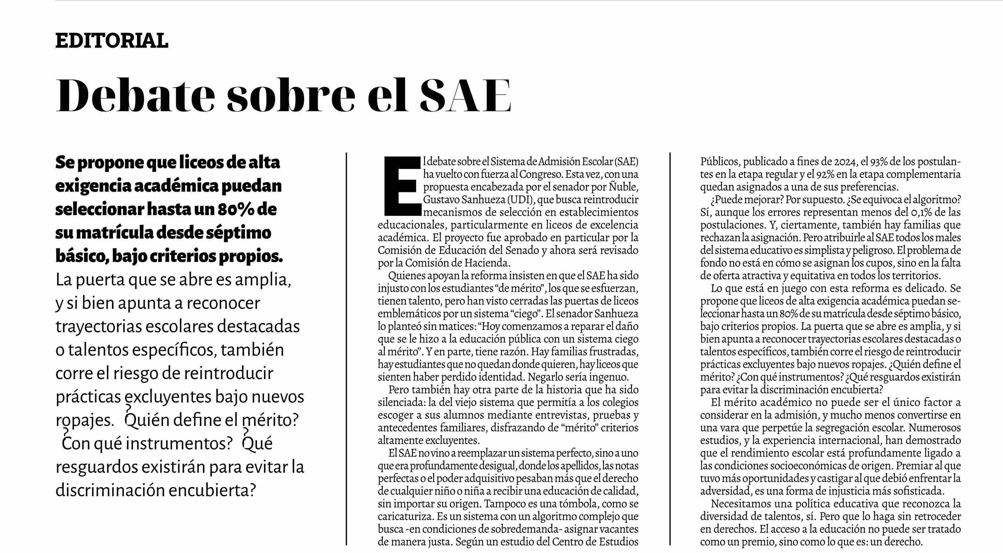EDITORIAL: Debate sobre el SAE