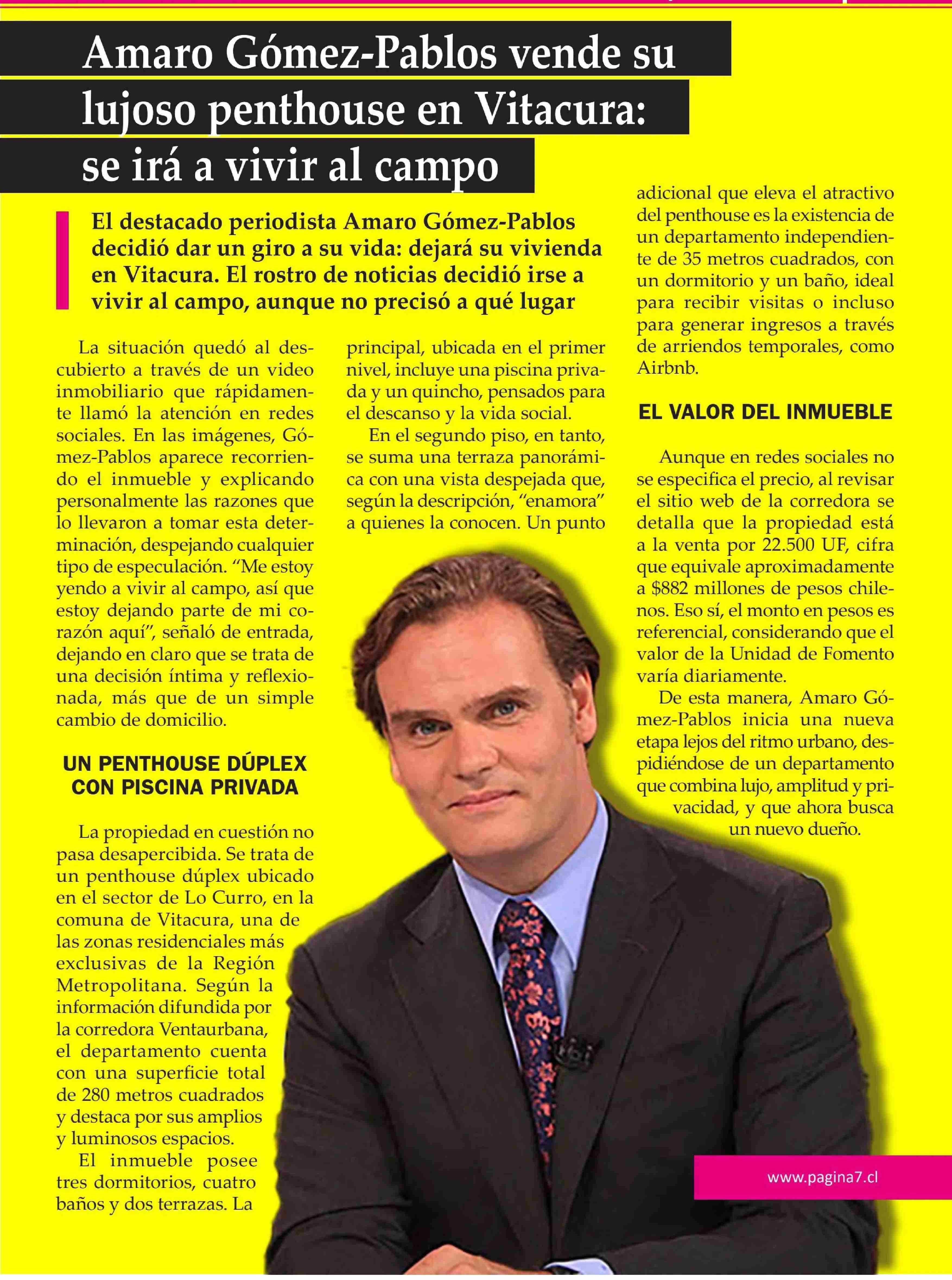 _Amaro Gómez-Pablos vende su lujoso penthouse en Vitacura: se irá a vivir al campo