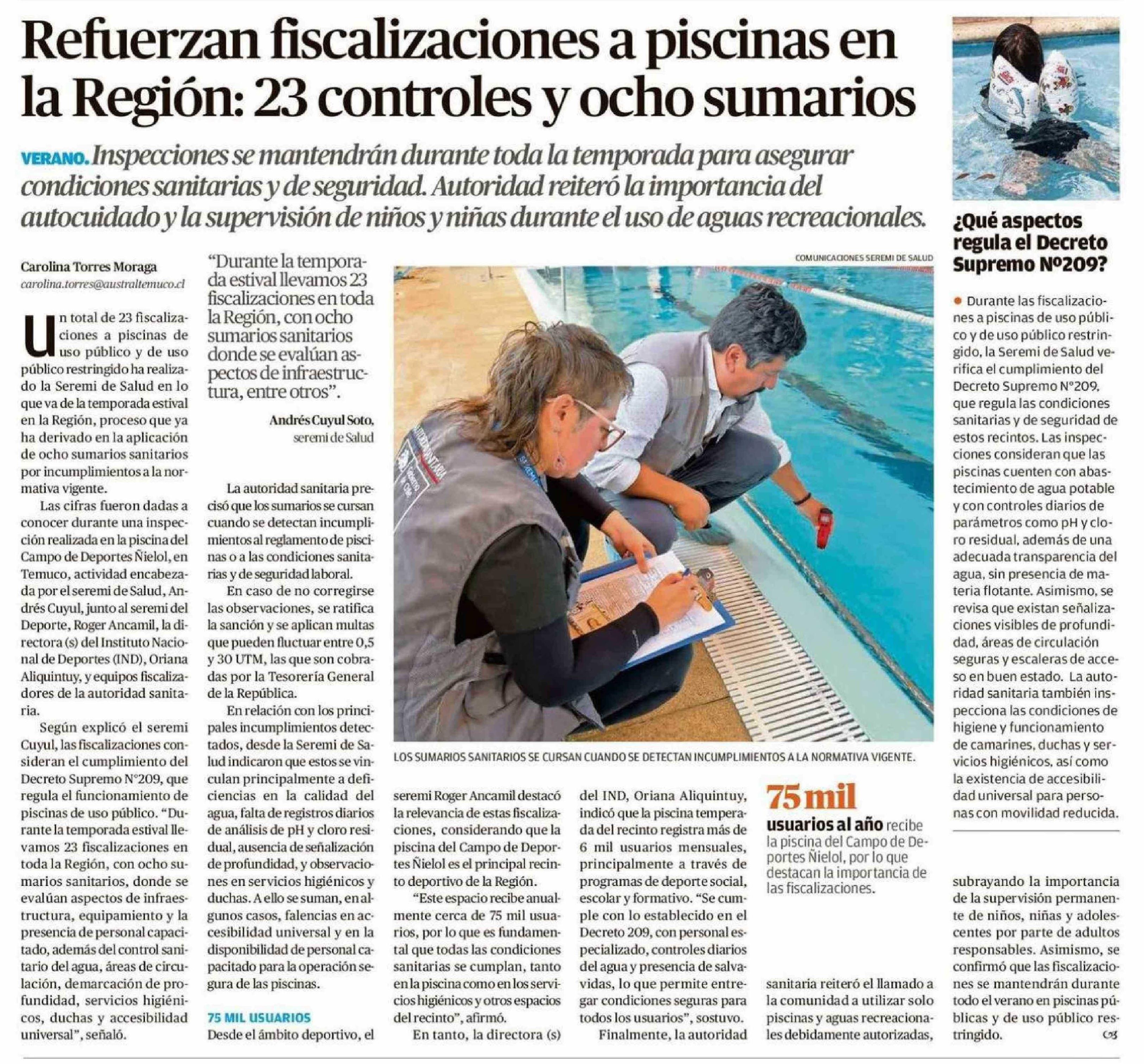 Refuerzan fiscalizaciones a piscinas en la Región: 23 controles y ocho sumarios