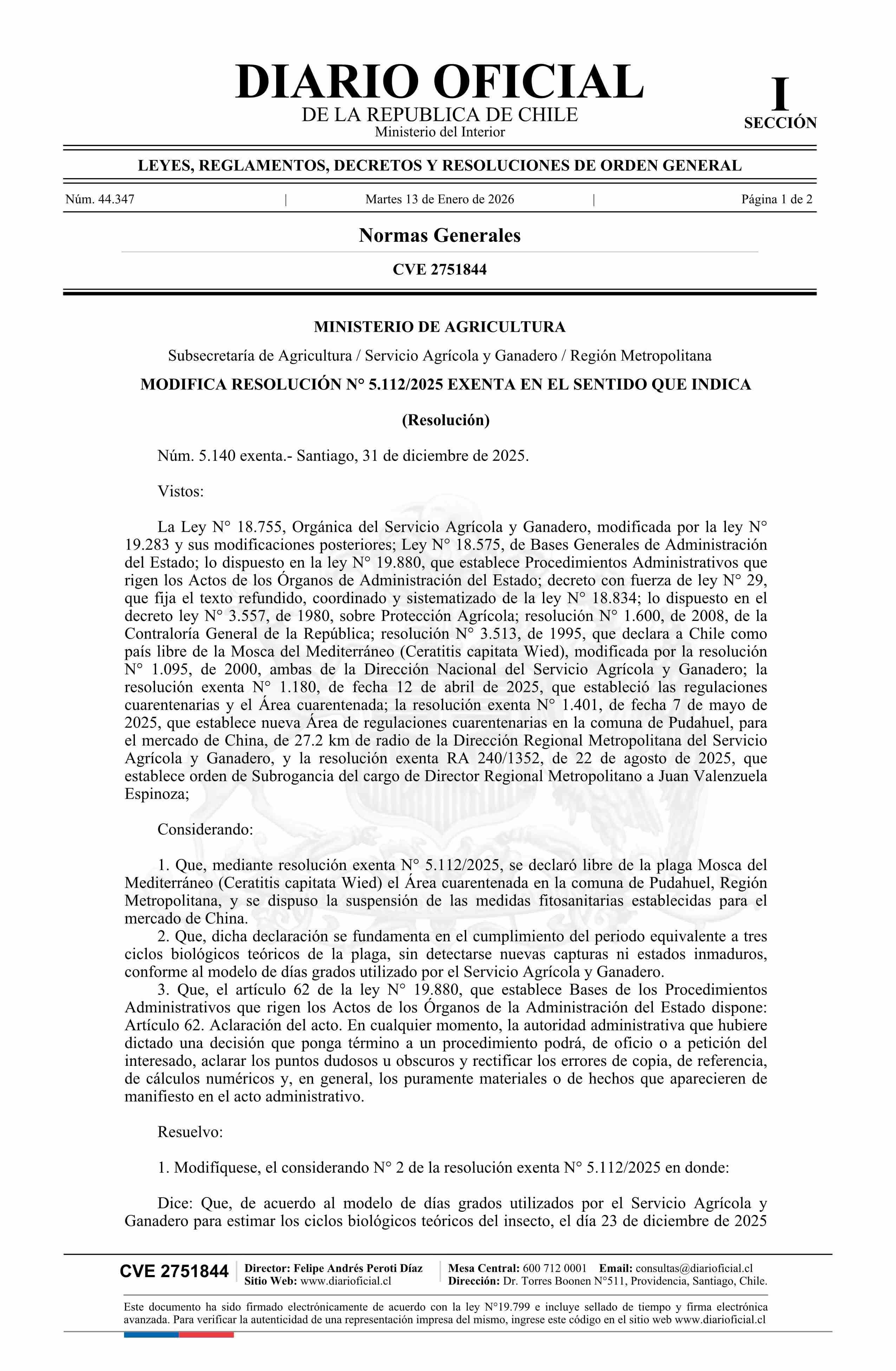 | Título: | Resolución exenta número 5.140, de 2025.- Modifica resolución N° 5.112 exenta, de 2025 |