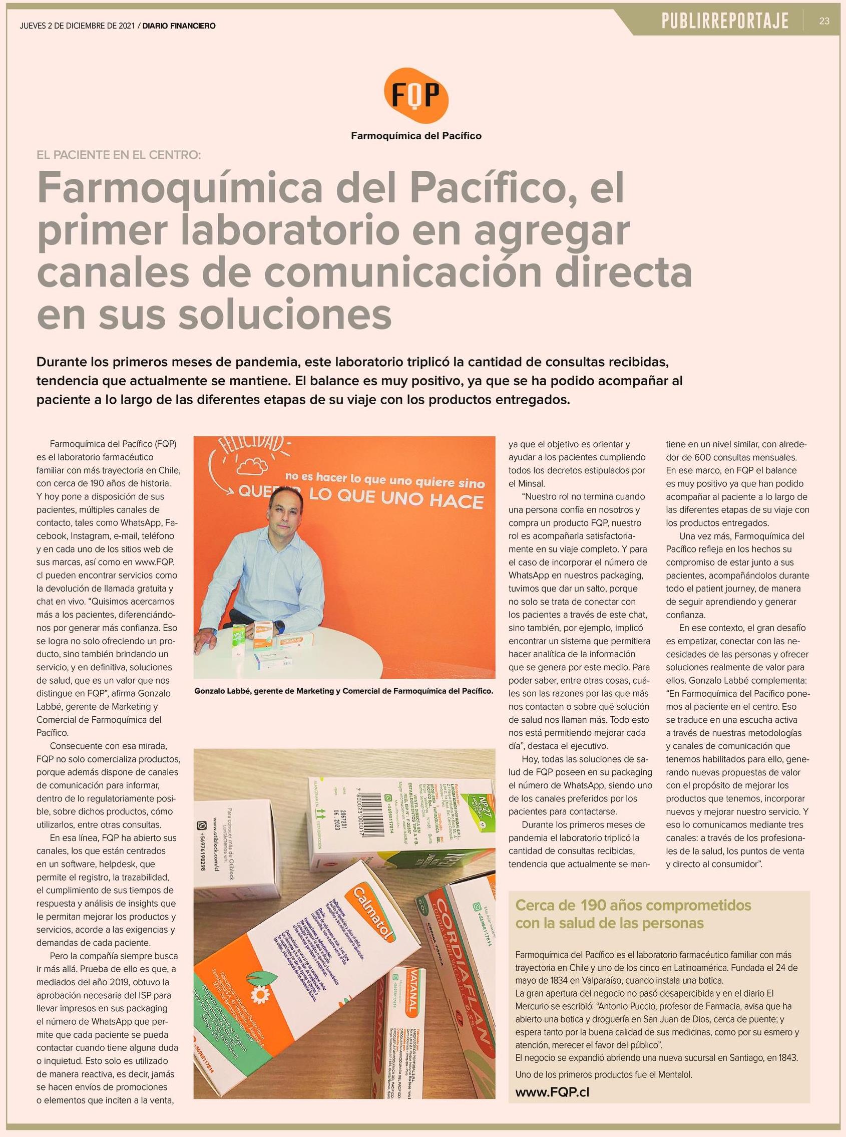 Farmoquímica del Pacífico, el primer laboratorio en agregar canales de comunicación directa en sus soluciones