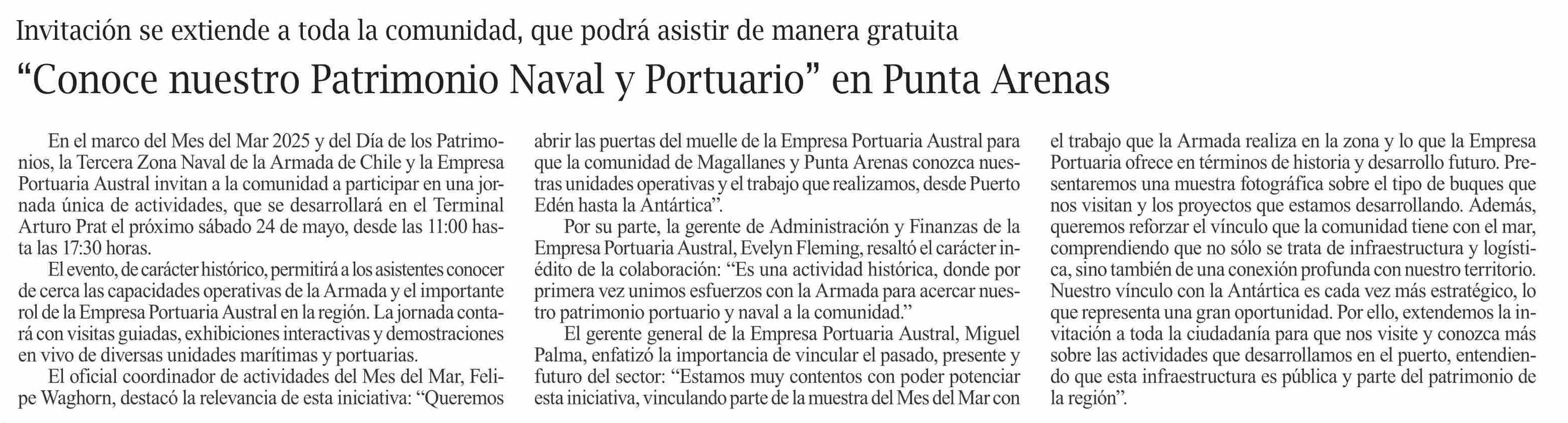 “Conoce nuestro Patrimonio Naval y Portuario” en Punta Arenas