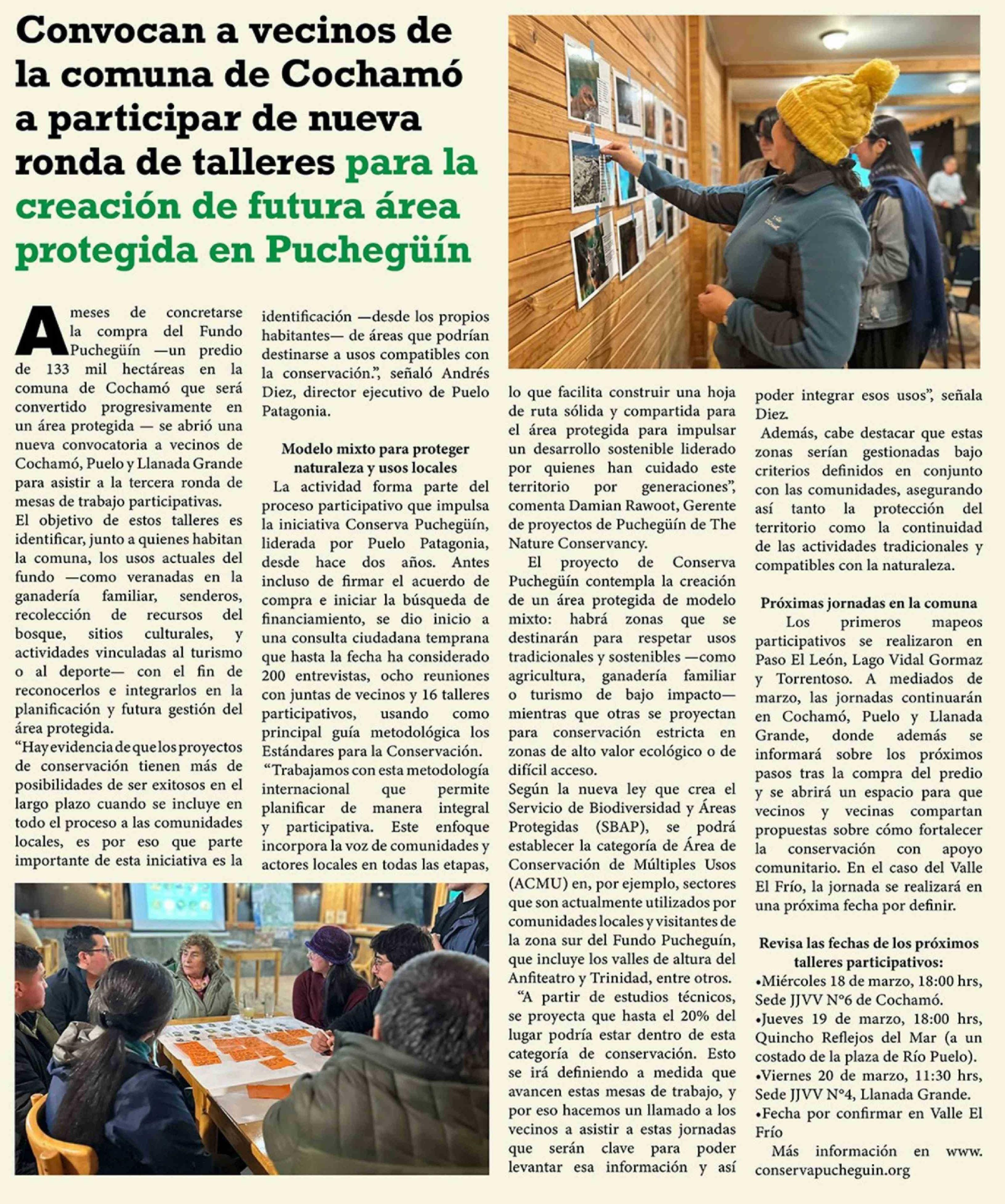 Convocan a vecinos de la comuna de Cochamó a participar de nueva ronda de talleres para la creación de futura área protegida en Pucheguín
