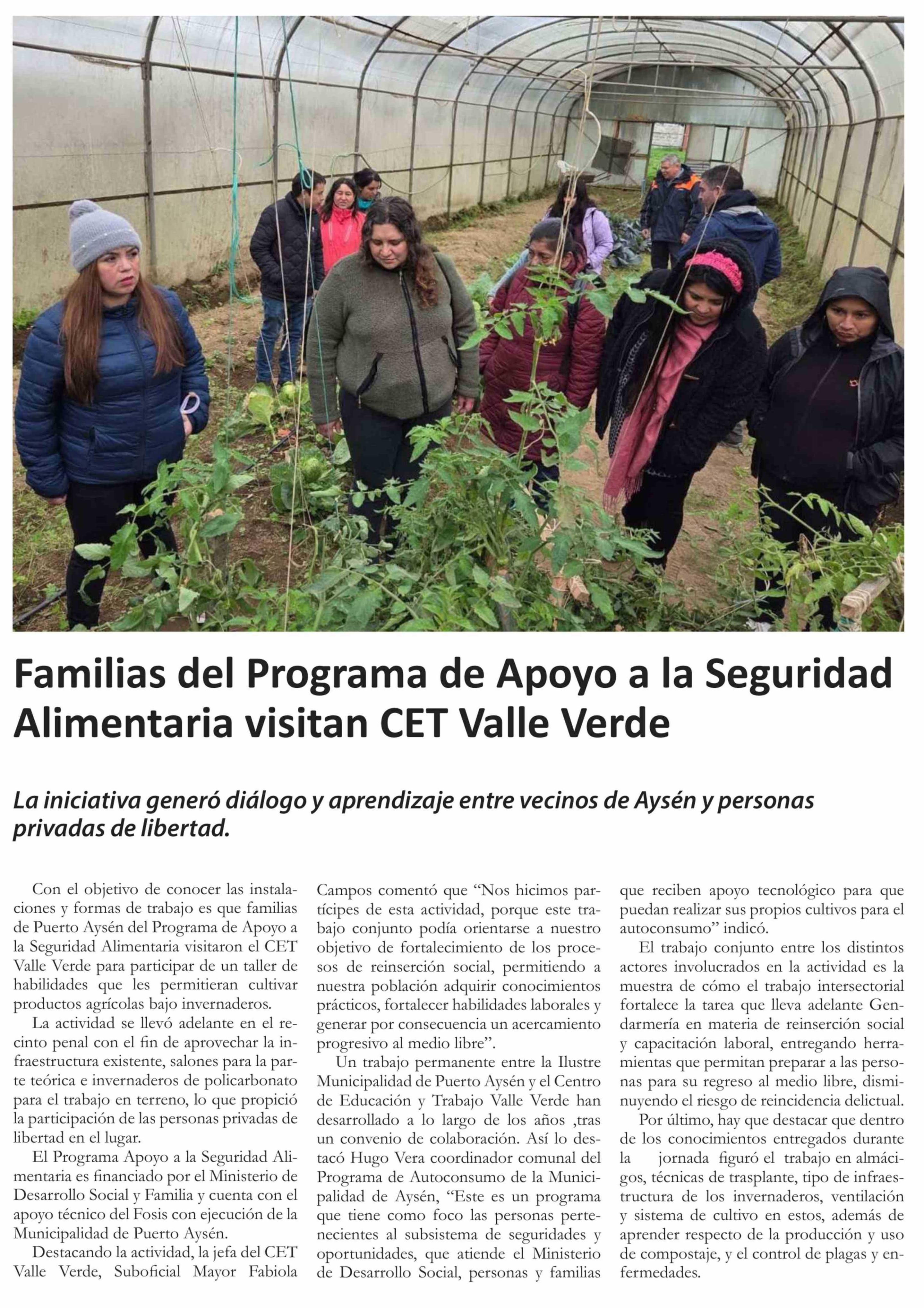 Familias del Programa de Apoyo a la Seguridad Alimentaria visitan CET Valle Verde
