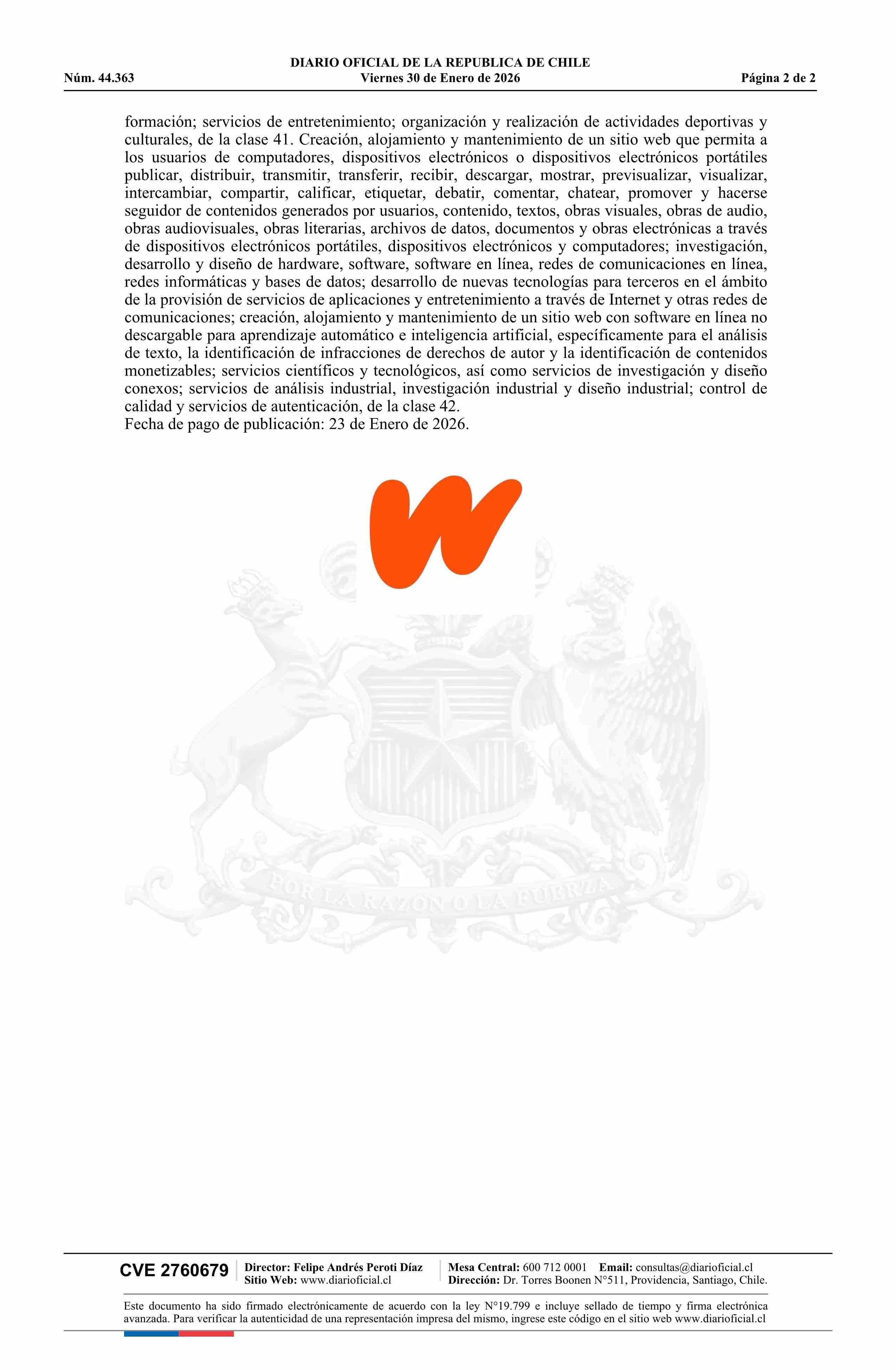 Diario Oficial Edición Electrónica (Diario Oficial de Chile - 6 Marcas Y Patentes)