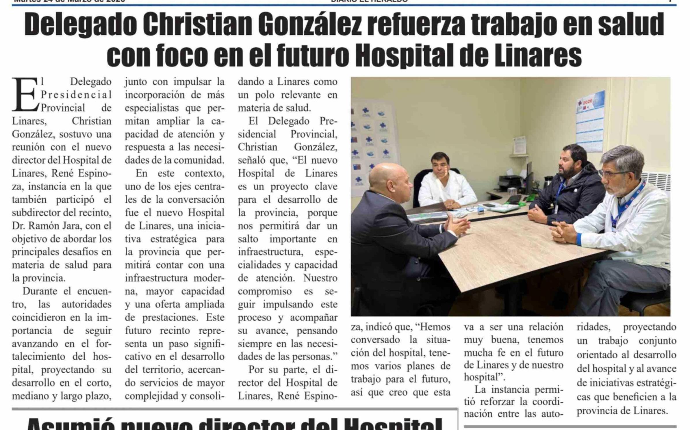Delegado Christian González refuerza trabajo en salud con foco en el futuro Hospital de Linares