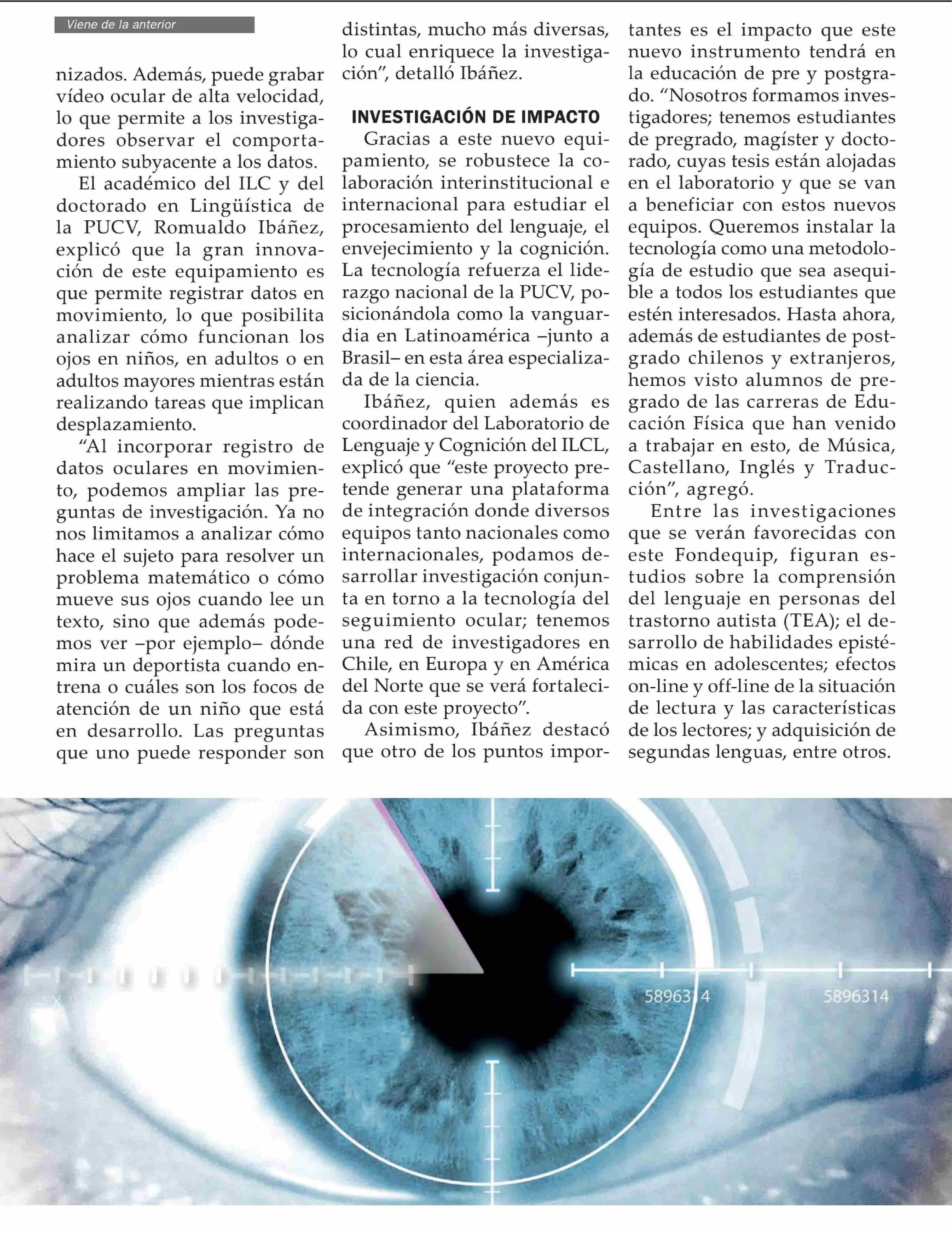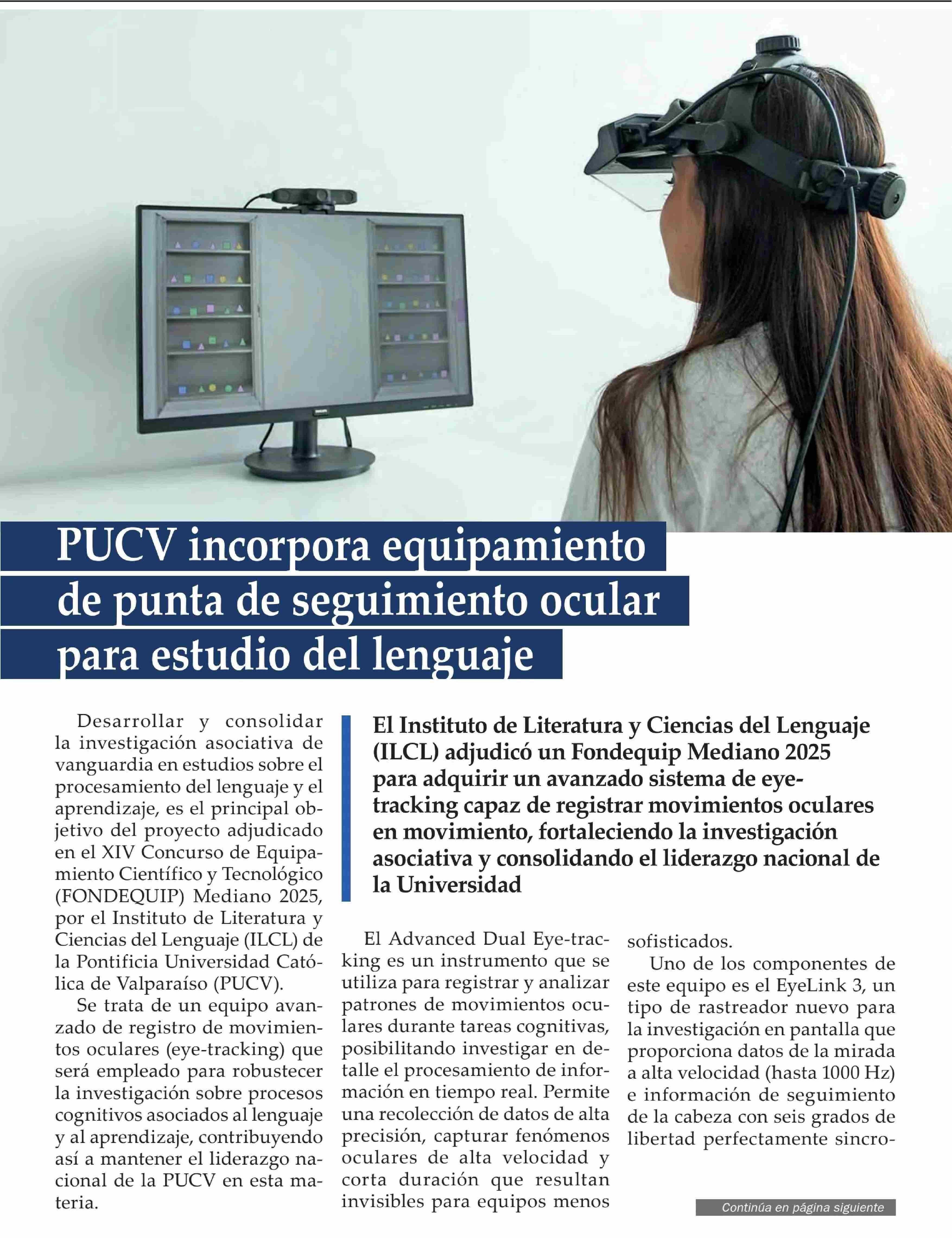 PUCV incorpora equipamiento de punta de seguimiento ocular para estudio del lenguaje