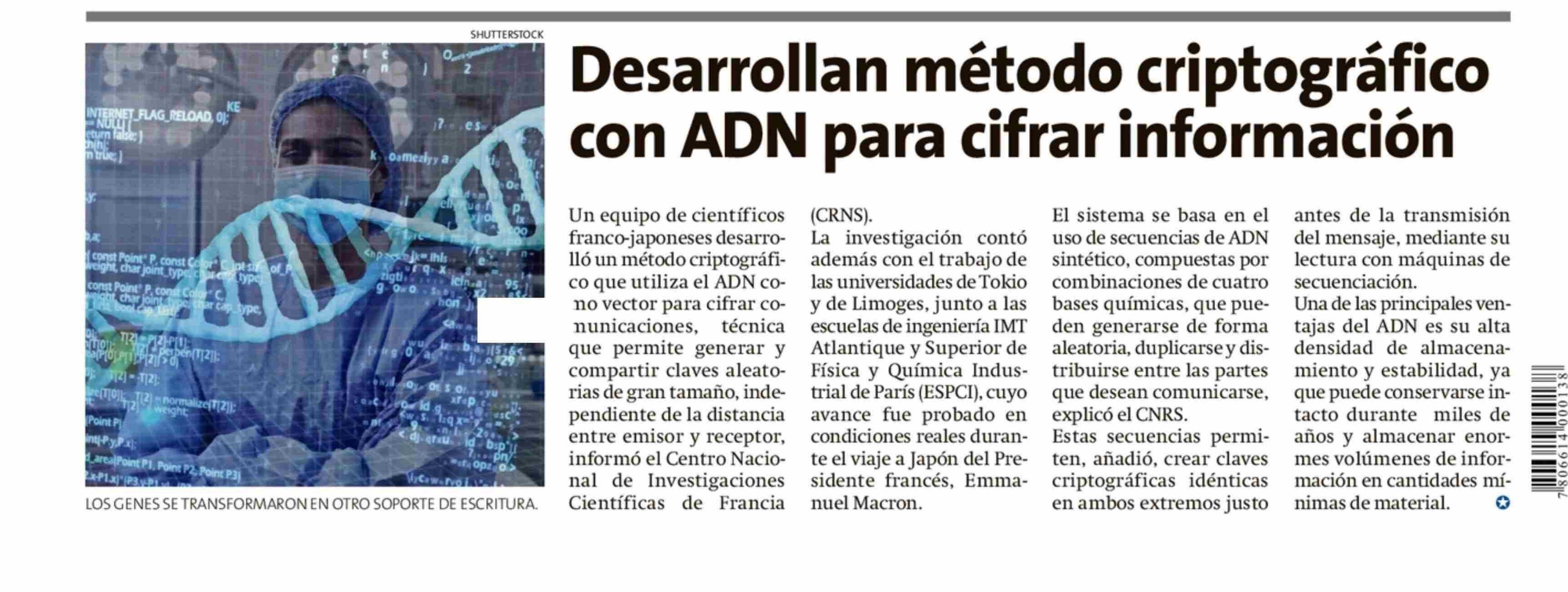 Desarrollan método criptográfico con ADN para cifrar información