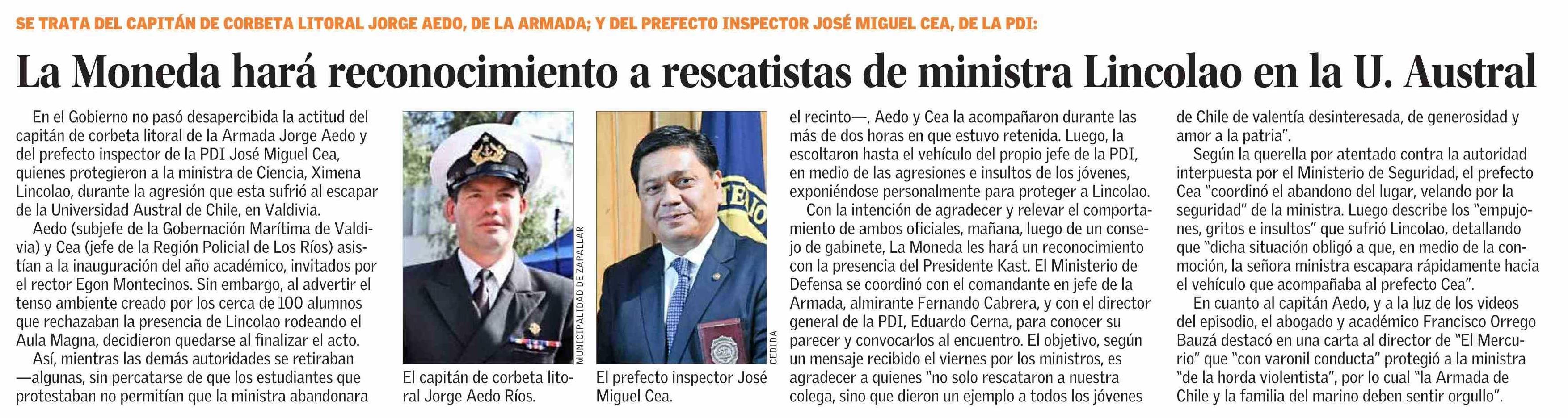 La Moneda hará reconocimiento a rescatistas de ministra Lincolao en la U. Austral
