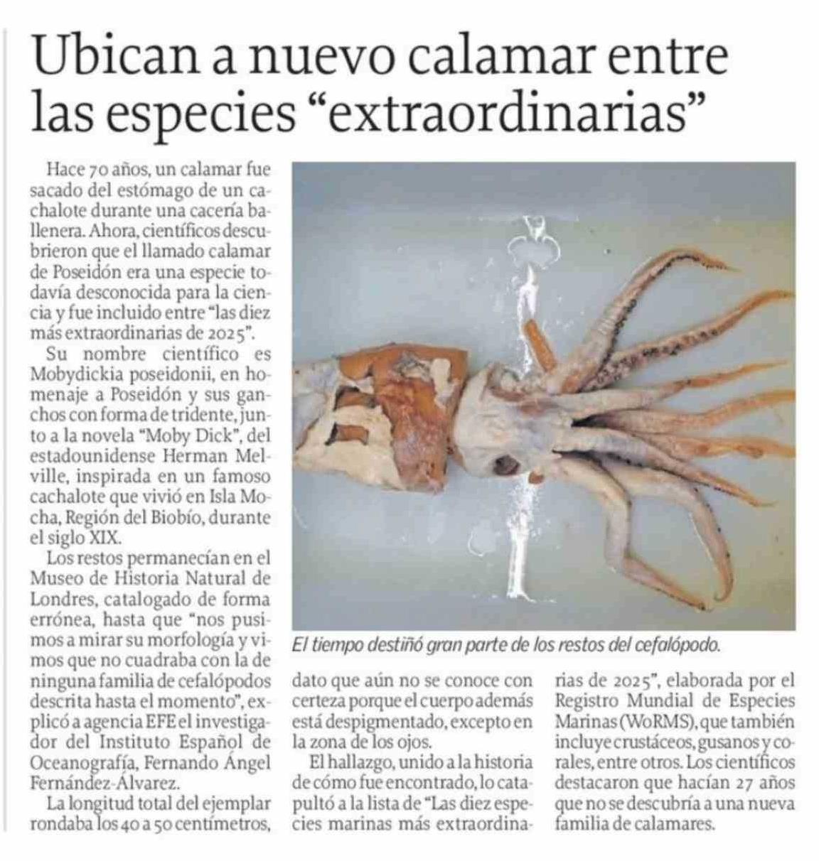 Título: Ubican a nuevo calamar entre las especies "extraordinarias"