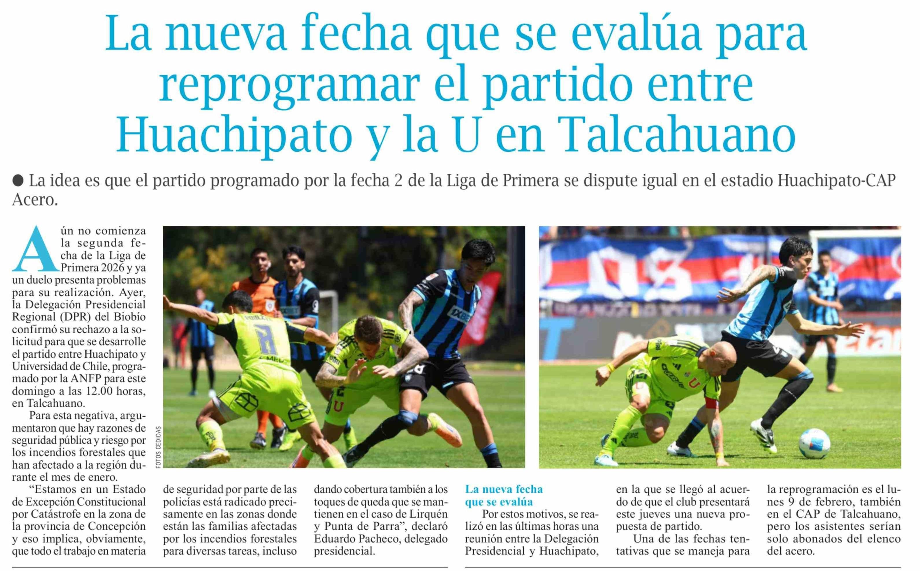 La nueva fecha que se evalúa para reprogramar el partido entre Huachipato y la U en Talcahuano
