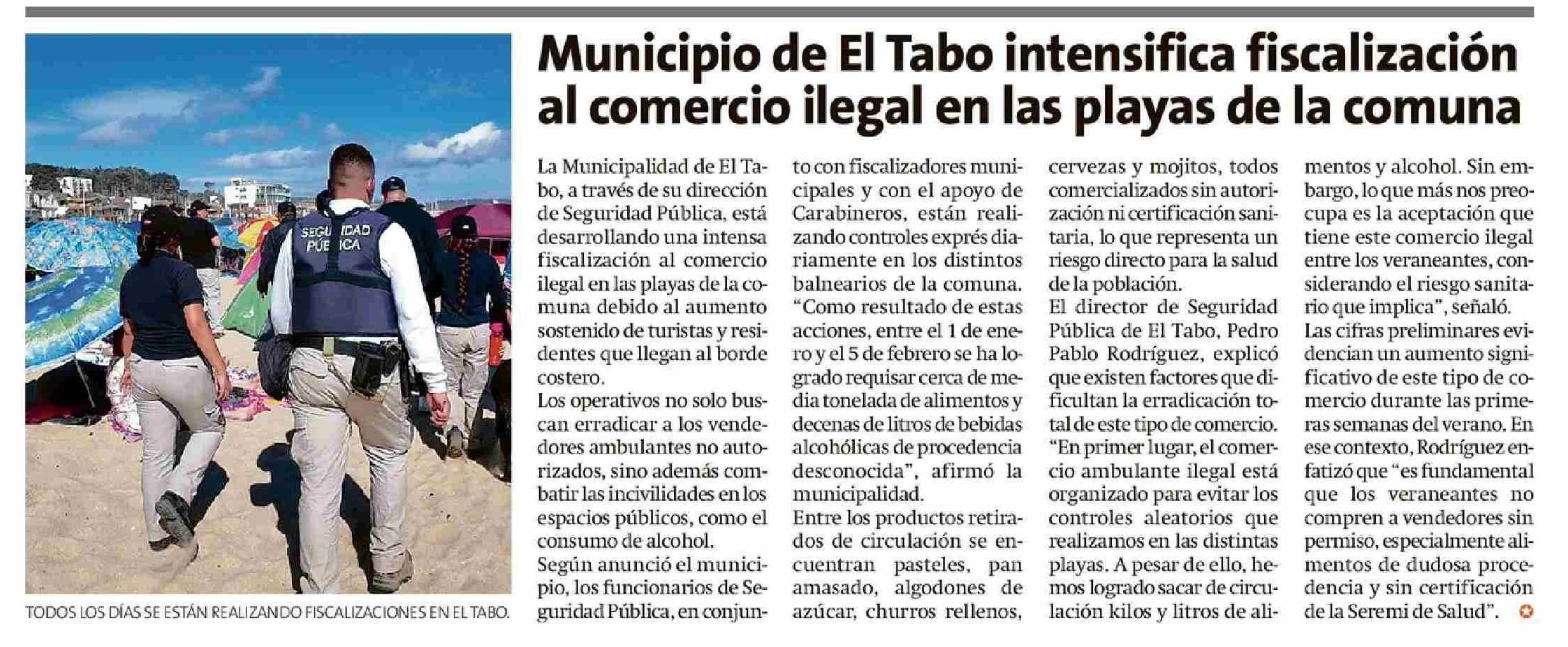 Municipio de El Tabo intensifica fiscalización al comercio ilegal en las playas de la comuna