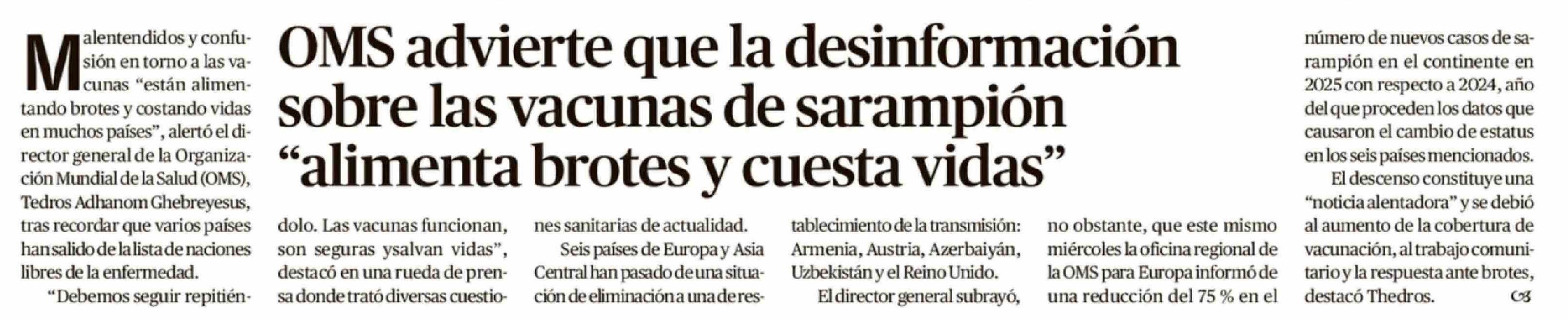 OMS advierte que la desinformación sobre las vacunas de sarampión "alimenta brotes y cuesta vidas"
