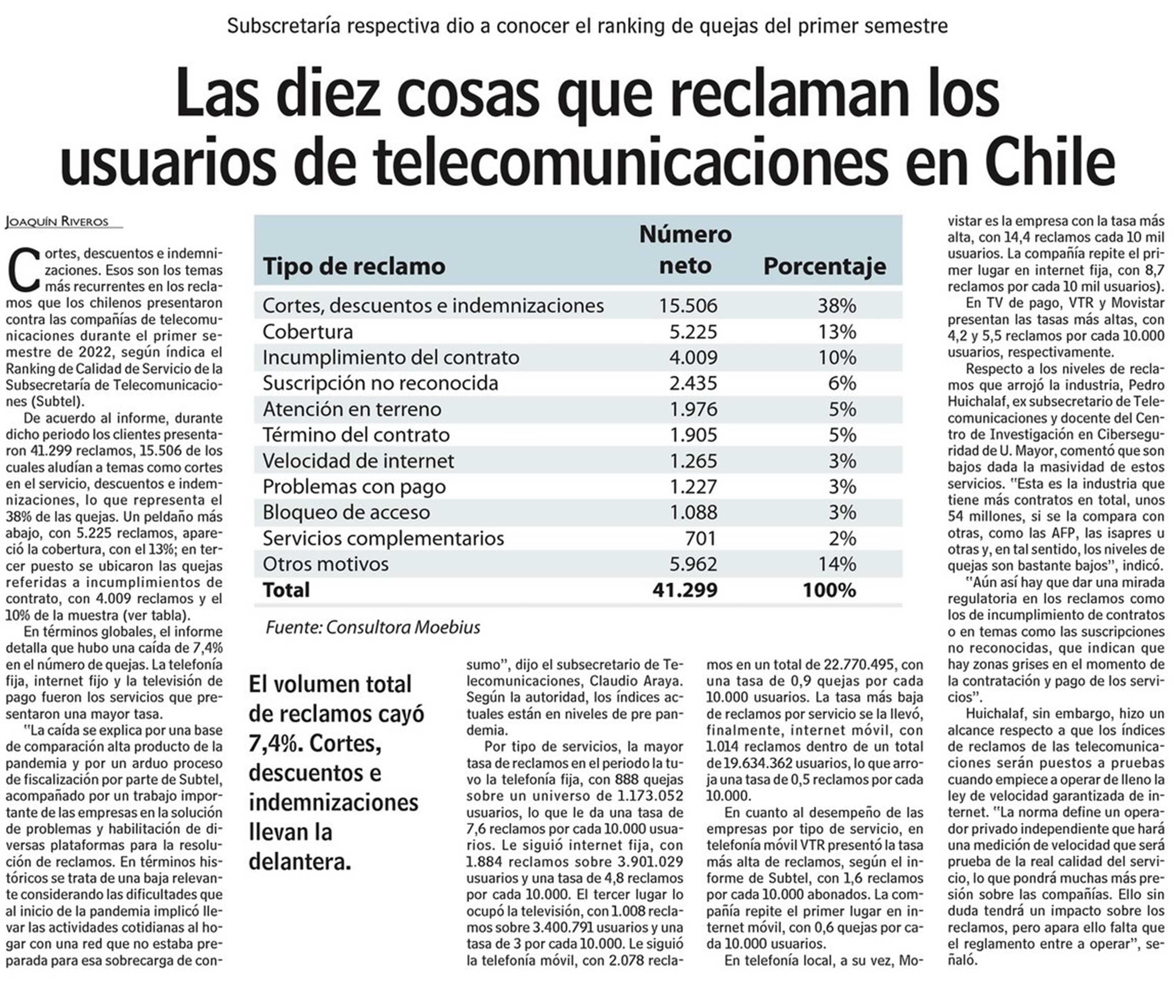 Las diez cosas que reclaman los usuarios de telecomunicaciones en Chile