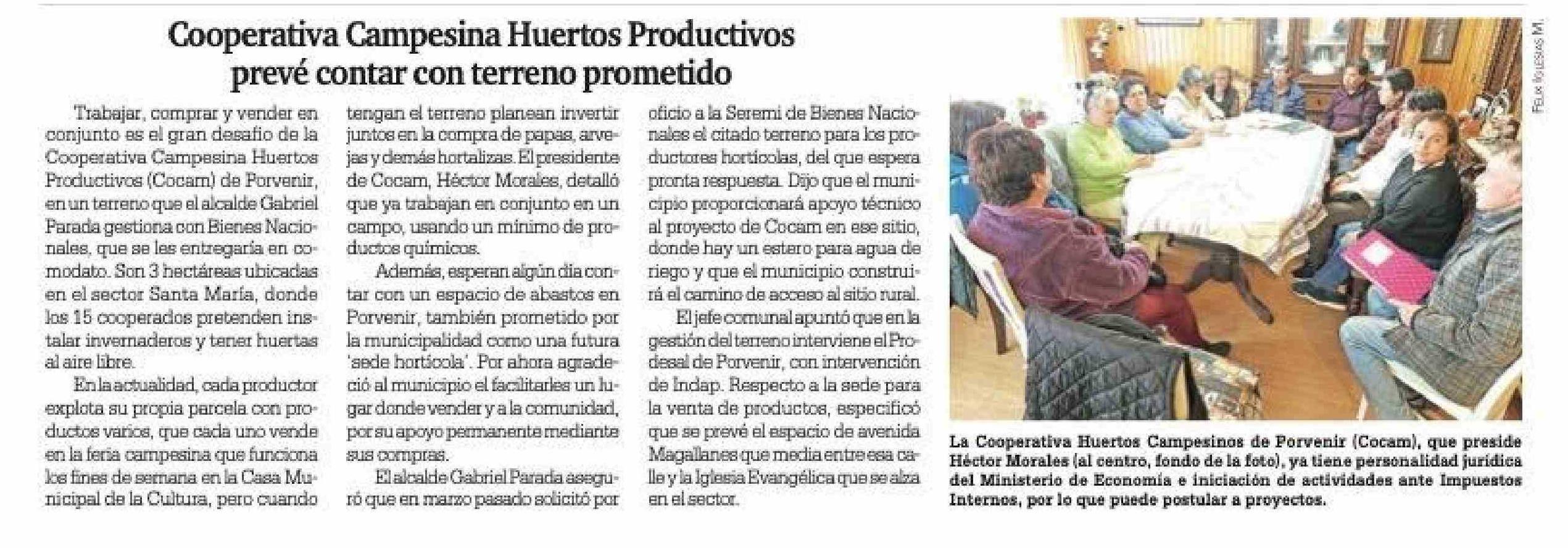 Cooperativa Campesina Huertos Productivos prevé contar con terreno prometido