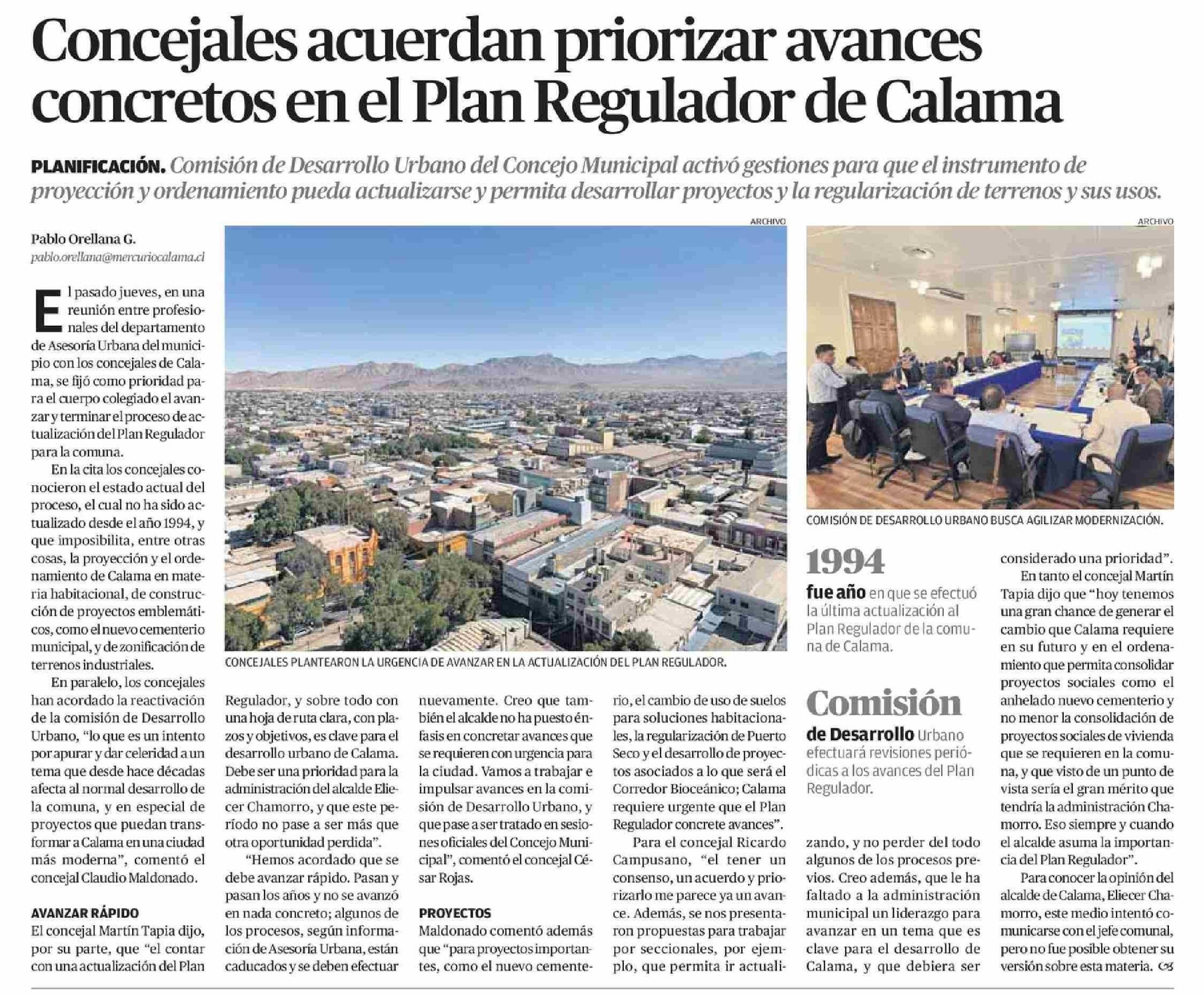 Concejales acuerdan priorizar avances concretos en el Plan Regulador de Calama