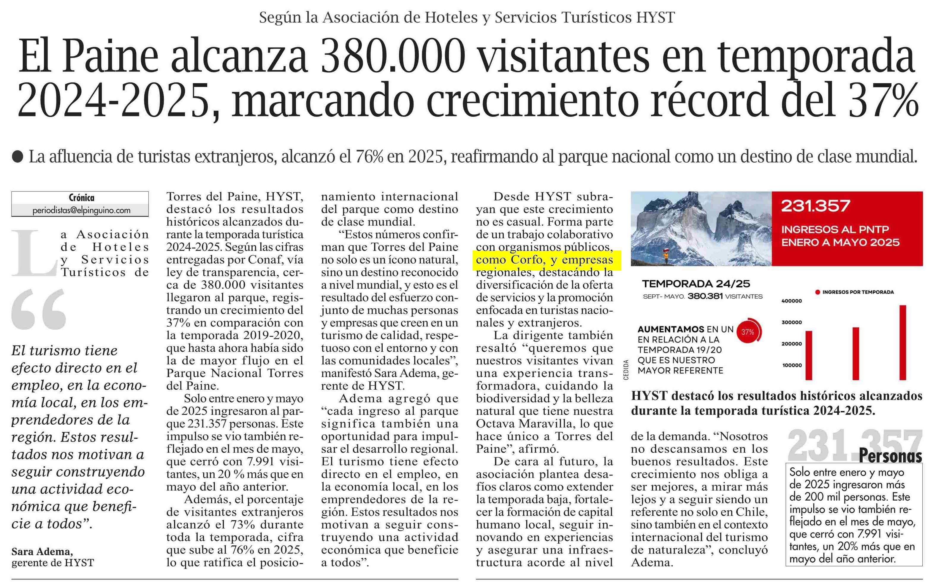 El Paine alcanza 380.000 visitantes en temporada 2024-2025, marcando crecimiento récord del 37%