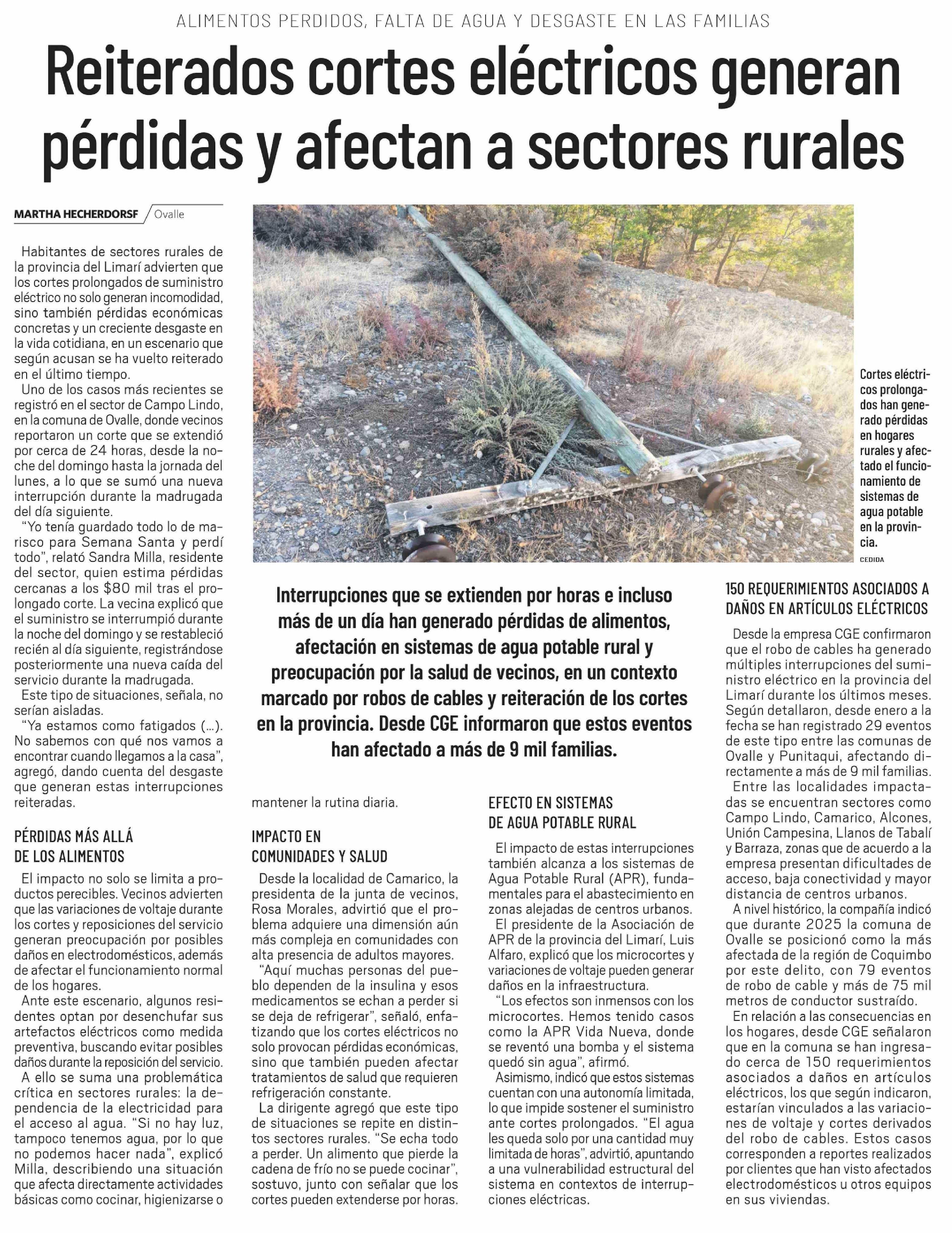 Título: Reiterados cortes eléctricos generan pérdidas y afectan a sectores rurales
