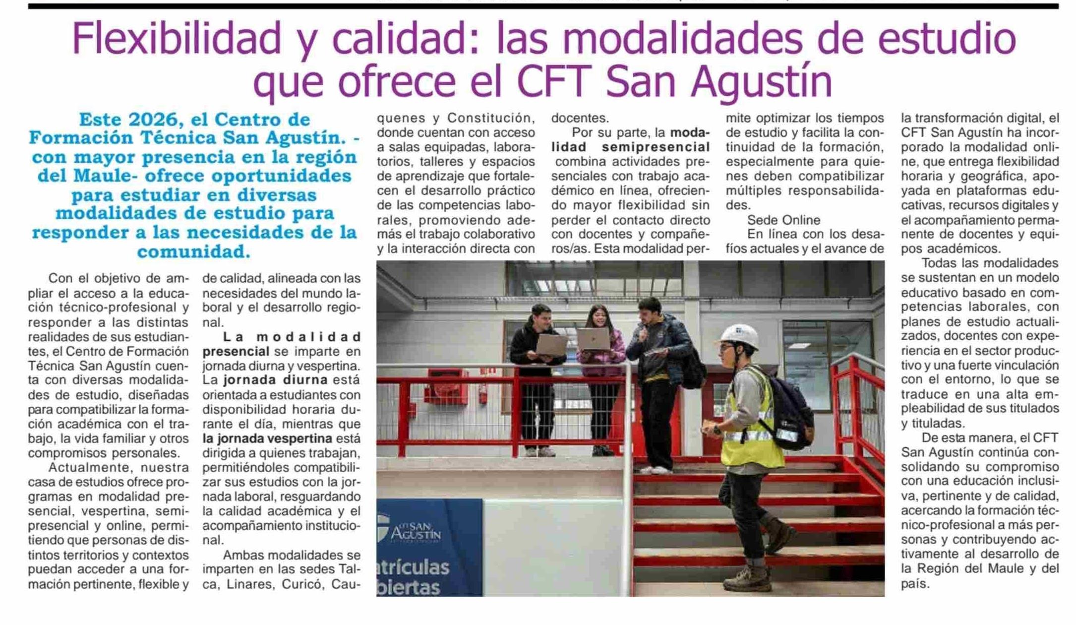 Flexibilidad y calidad: las modalidades de estudio que ofrece el CFT San Agustín