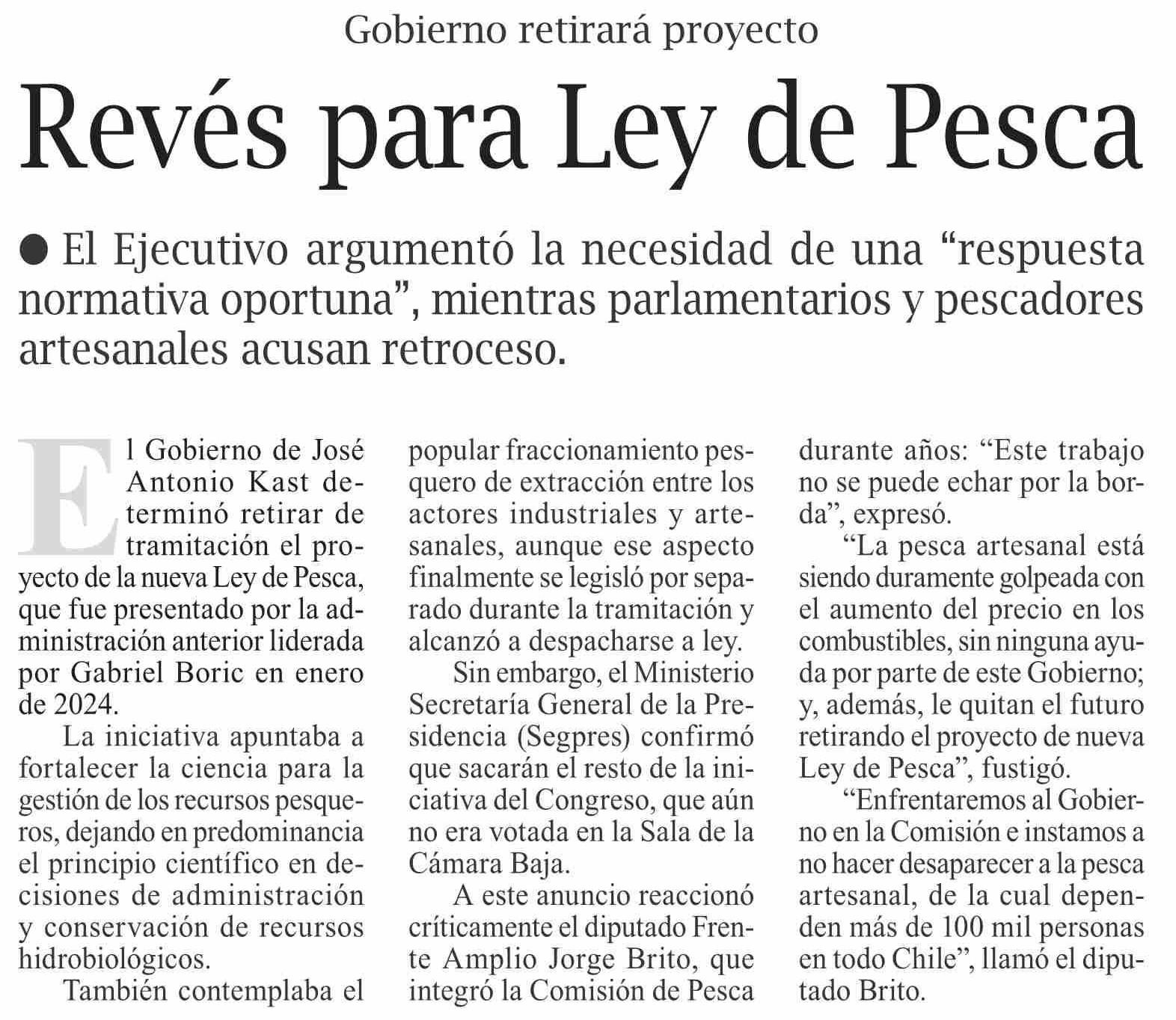 Revés para Ley de Pesca