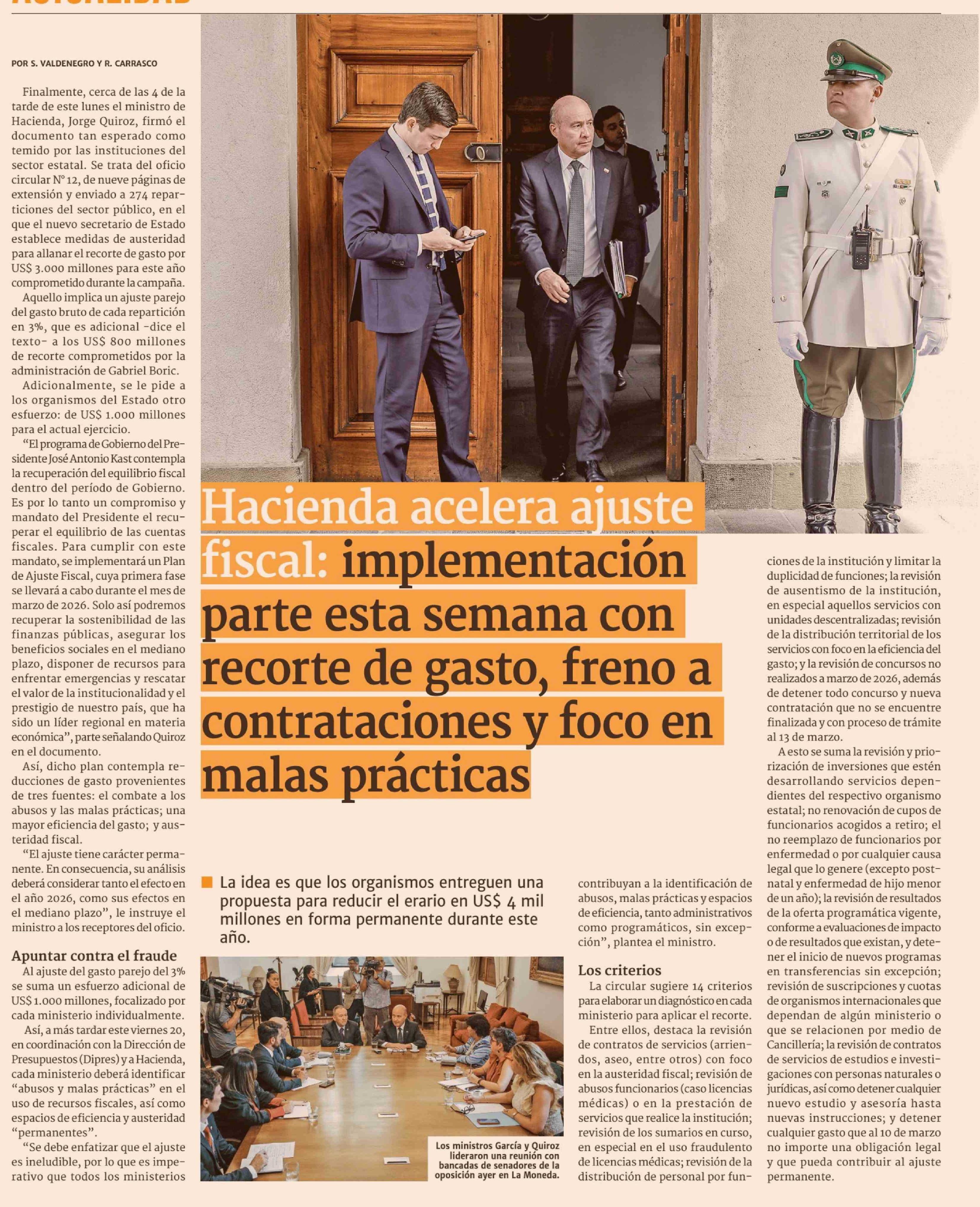 Título: Hacienda acelera ajuste fiscal: implementación parte esta semana con recorte de gasto, freno a contrataciones y foco en malas prácticas
