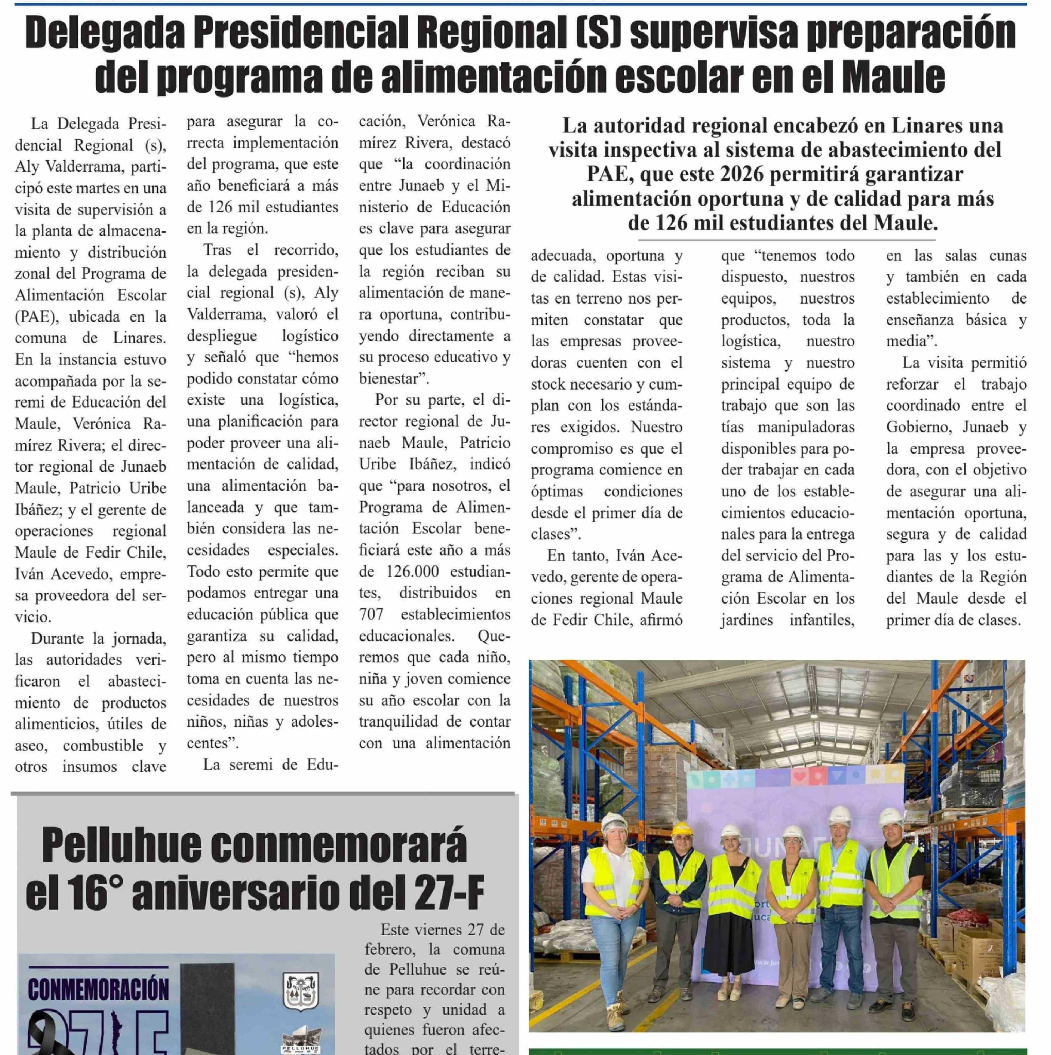 Delegada Presidencial Regional (S) supervisa preparación del programa de alimentación escolar en el Maule
