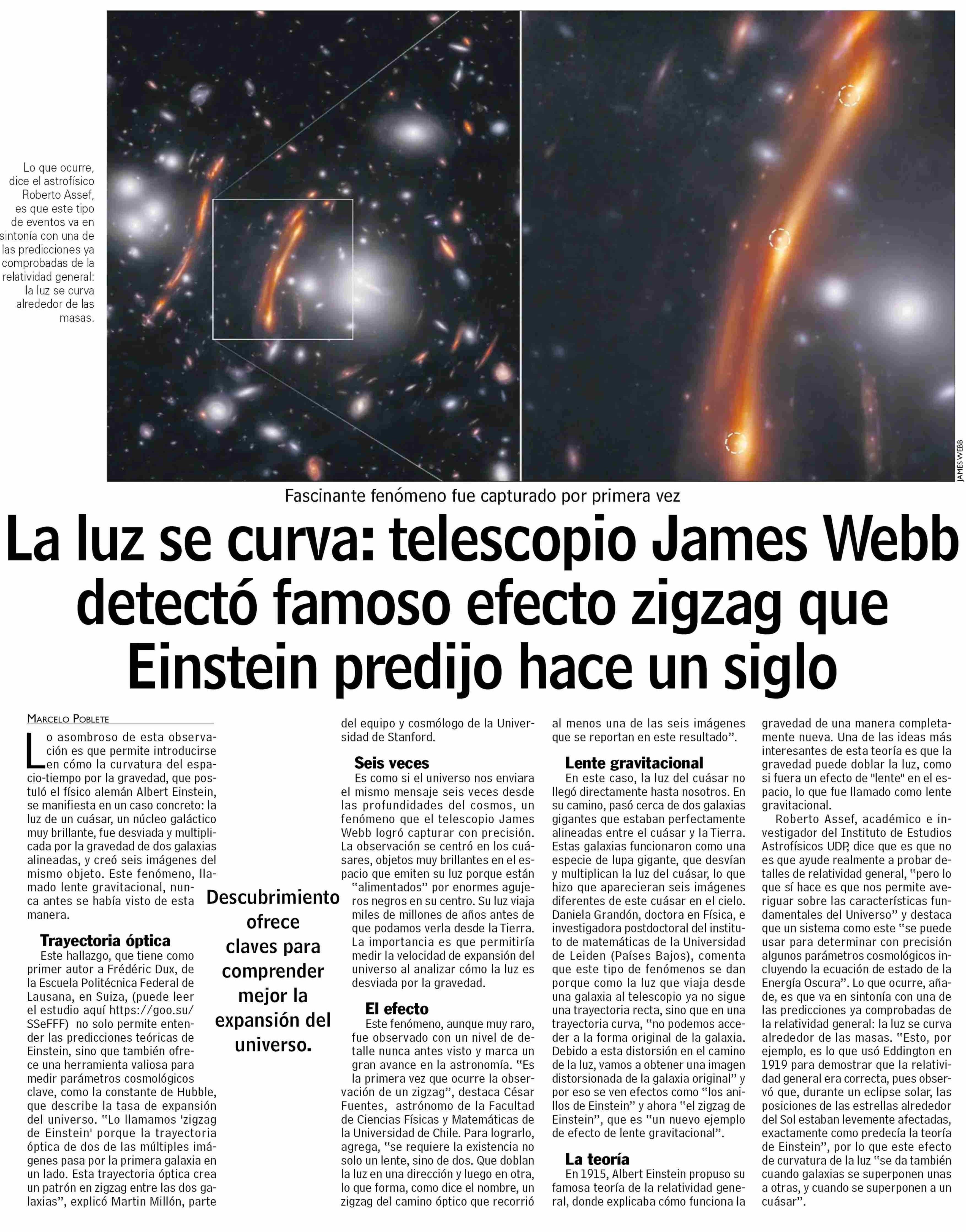 La luz se curva: telescopio James Webb detectó famoso efecto zigzag que Emstein predijo hace un siglo