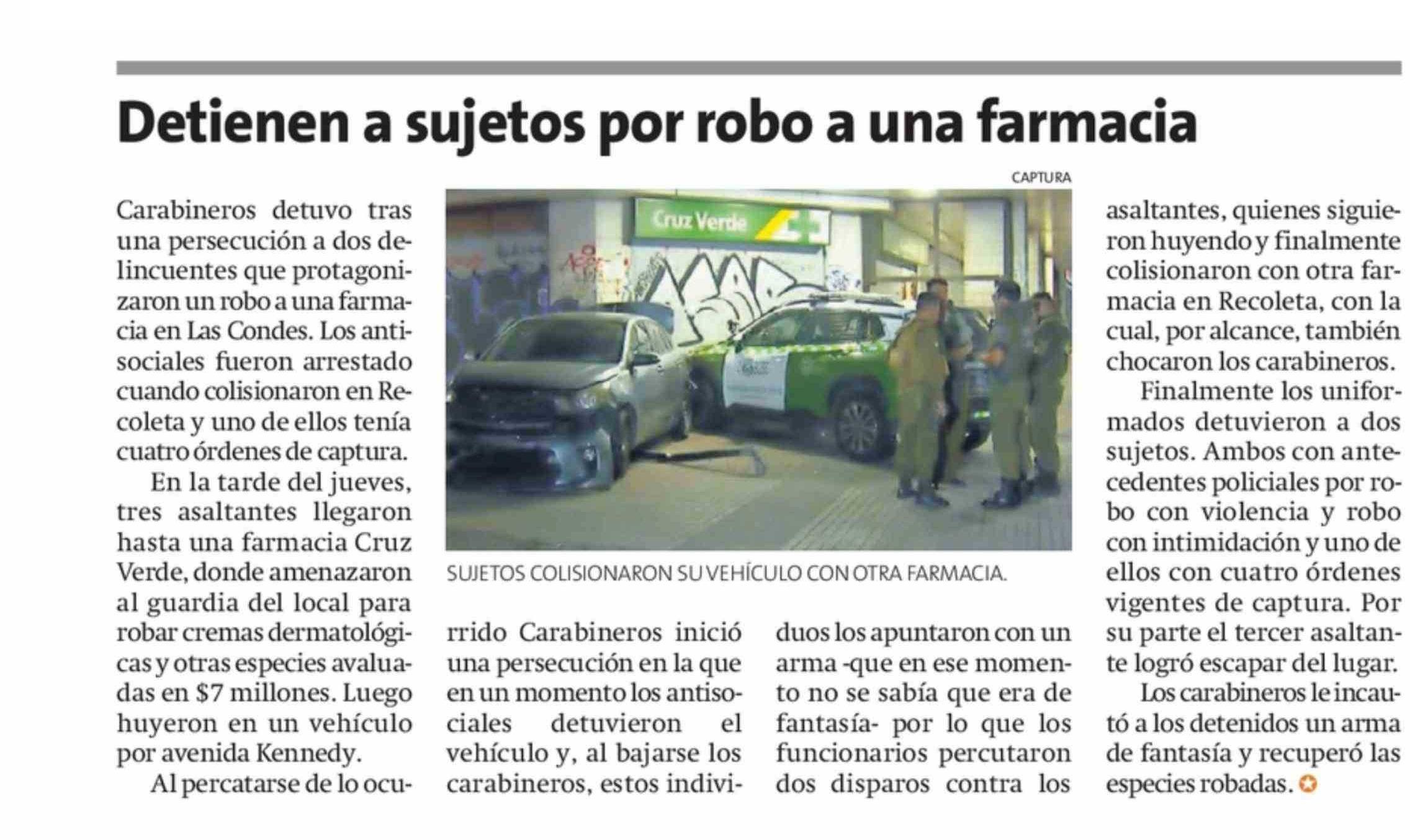 Detienen a sujetos por robo a una farmacia