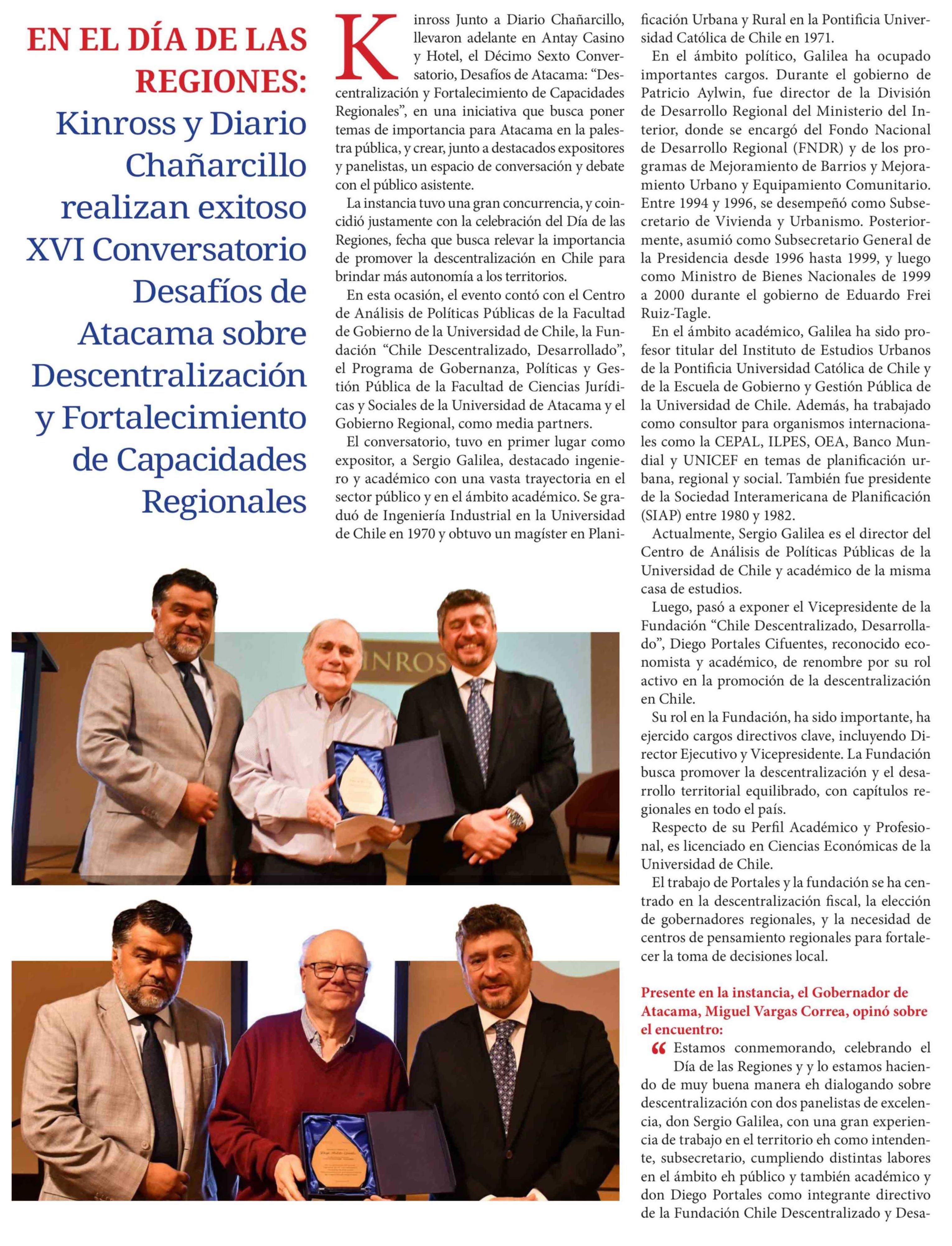Título: EN EL DÍA DE LAS REGIONES: Kinross y Diario Chañarcillo realizan exitoso XVI Conversatorio Desafíos de Atacama sobre Descentralización y Fortalecimiento de Capacidades Regionales