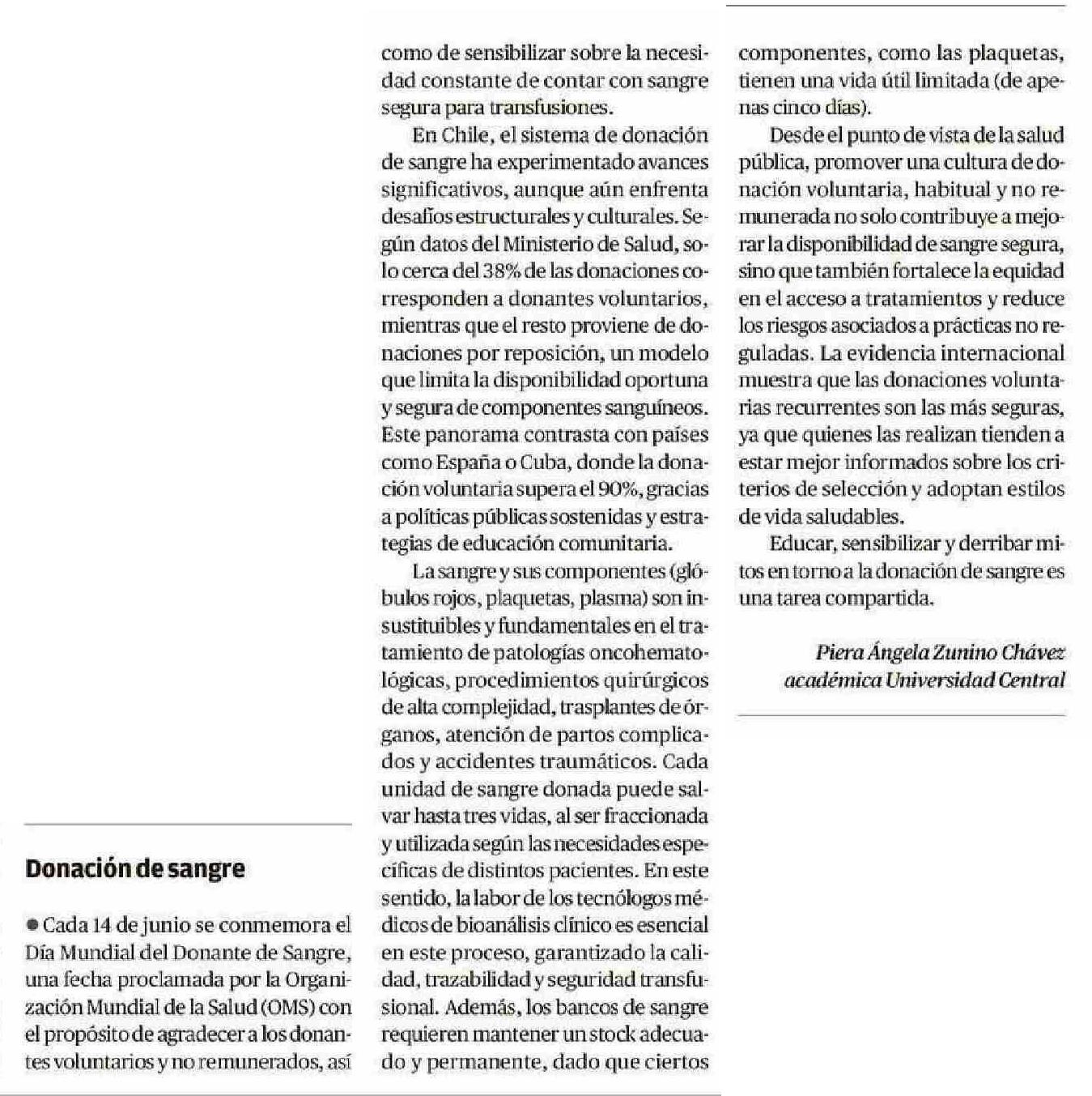 CARTAS: Donación de sangre