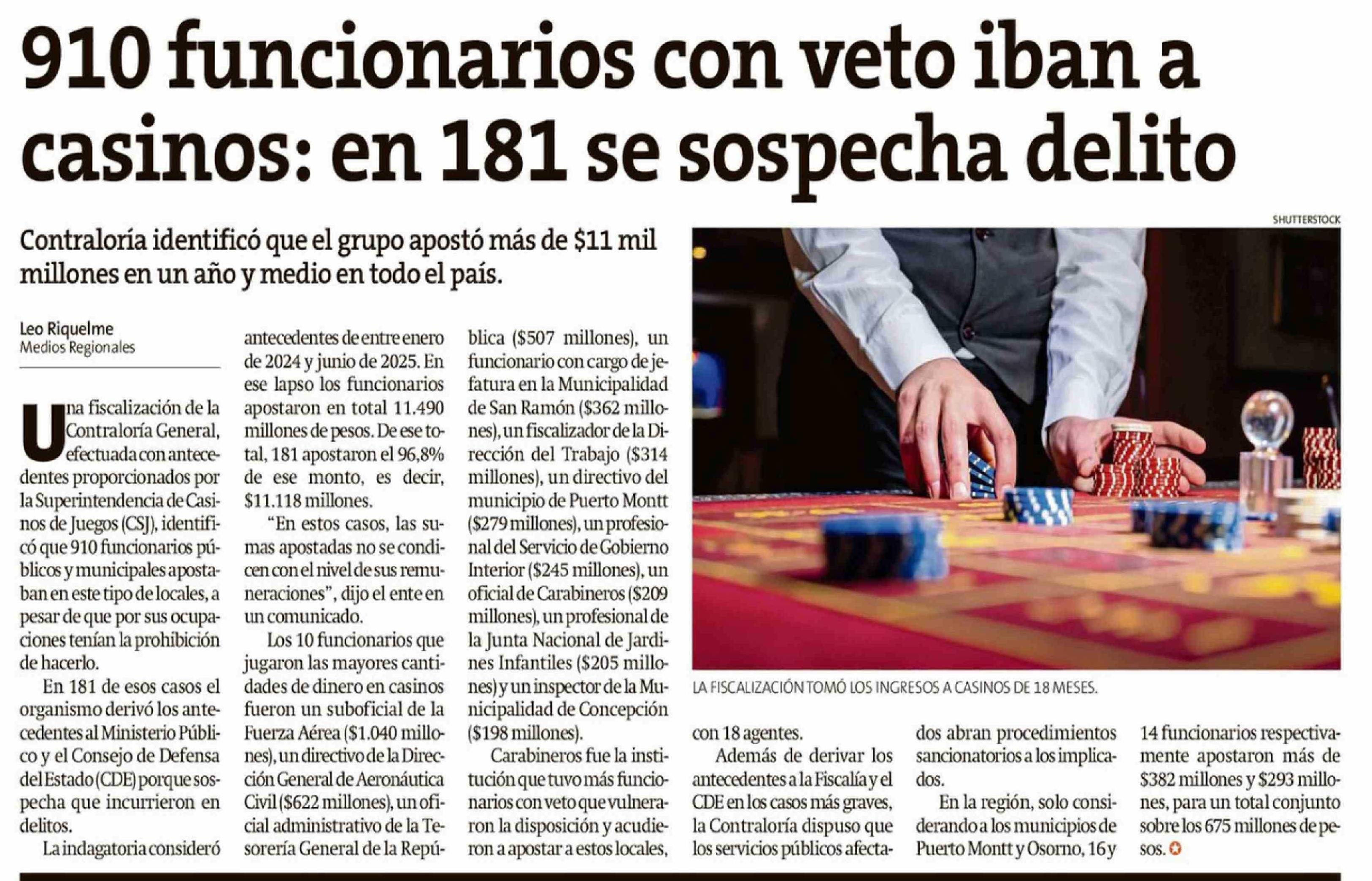 910 Funcionarios con veto iban a casinos: en 181 se sospecha delito