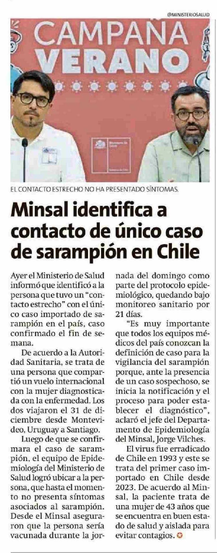 Minsal identifica a contacto de único caso de sarampión en Chile