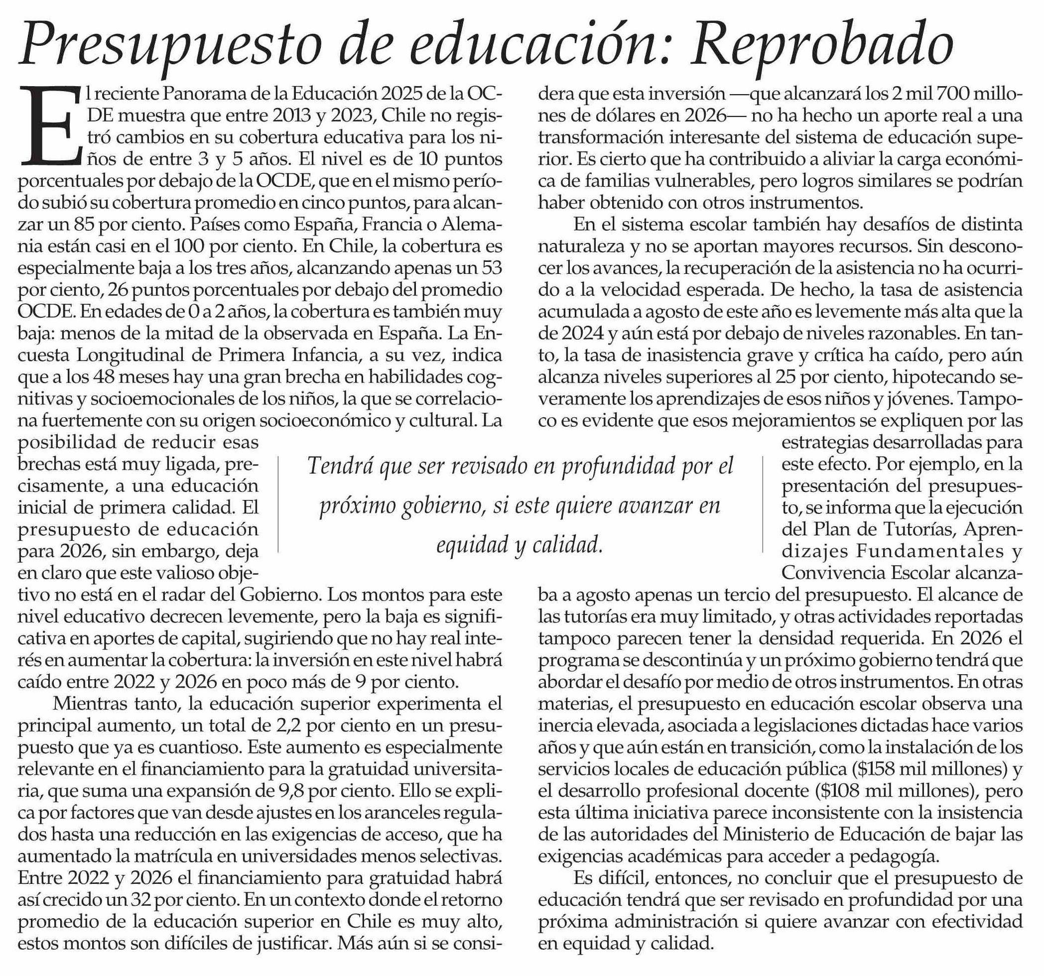 Editorial: Presupuesto de educación: Reprobado