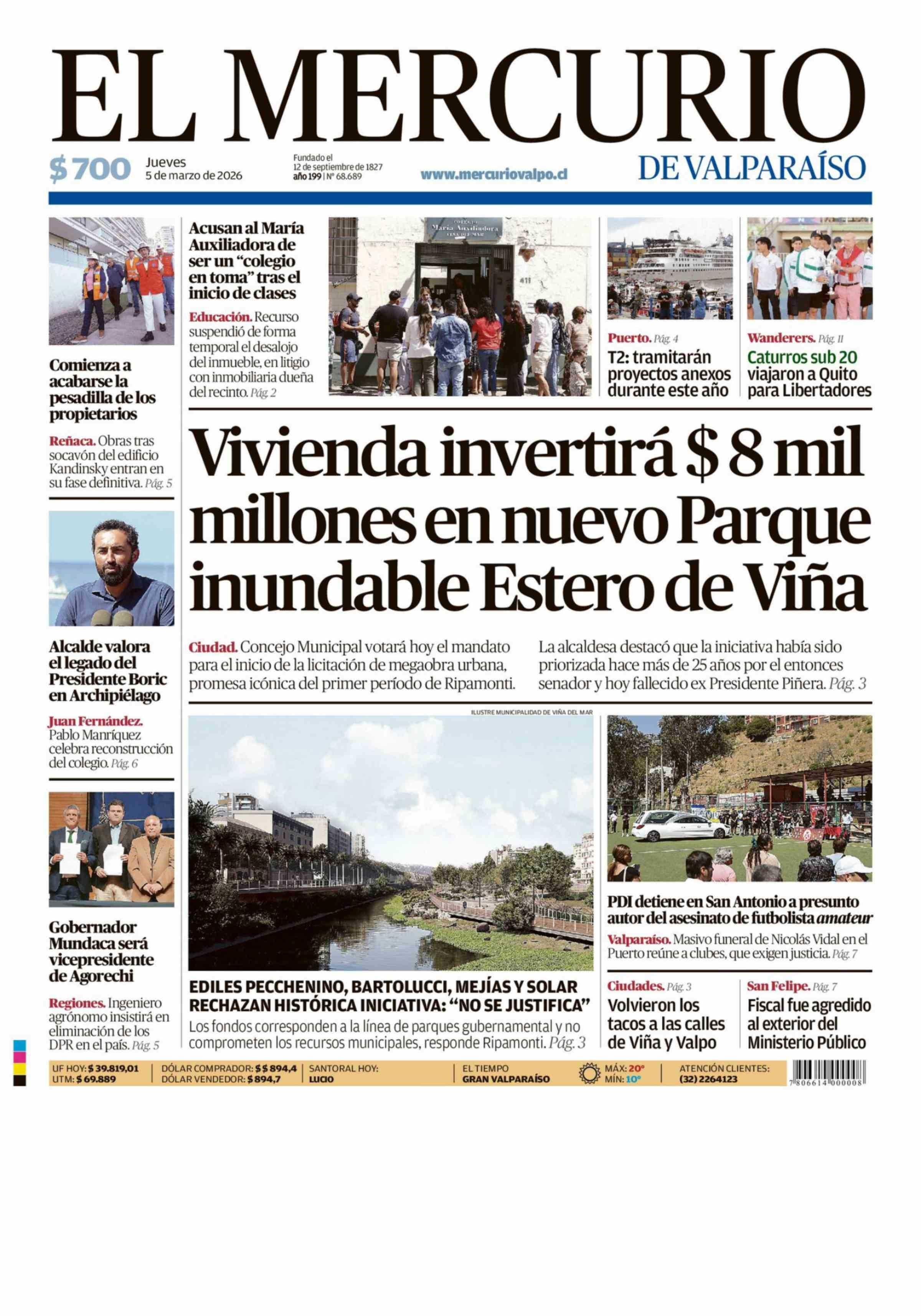 PORTADA EL MERCURIO DE VALPARAÍSO CHILE