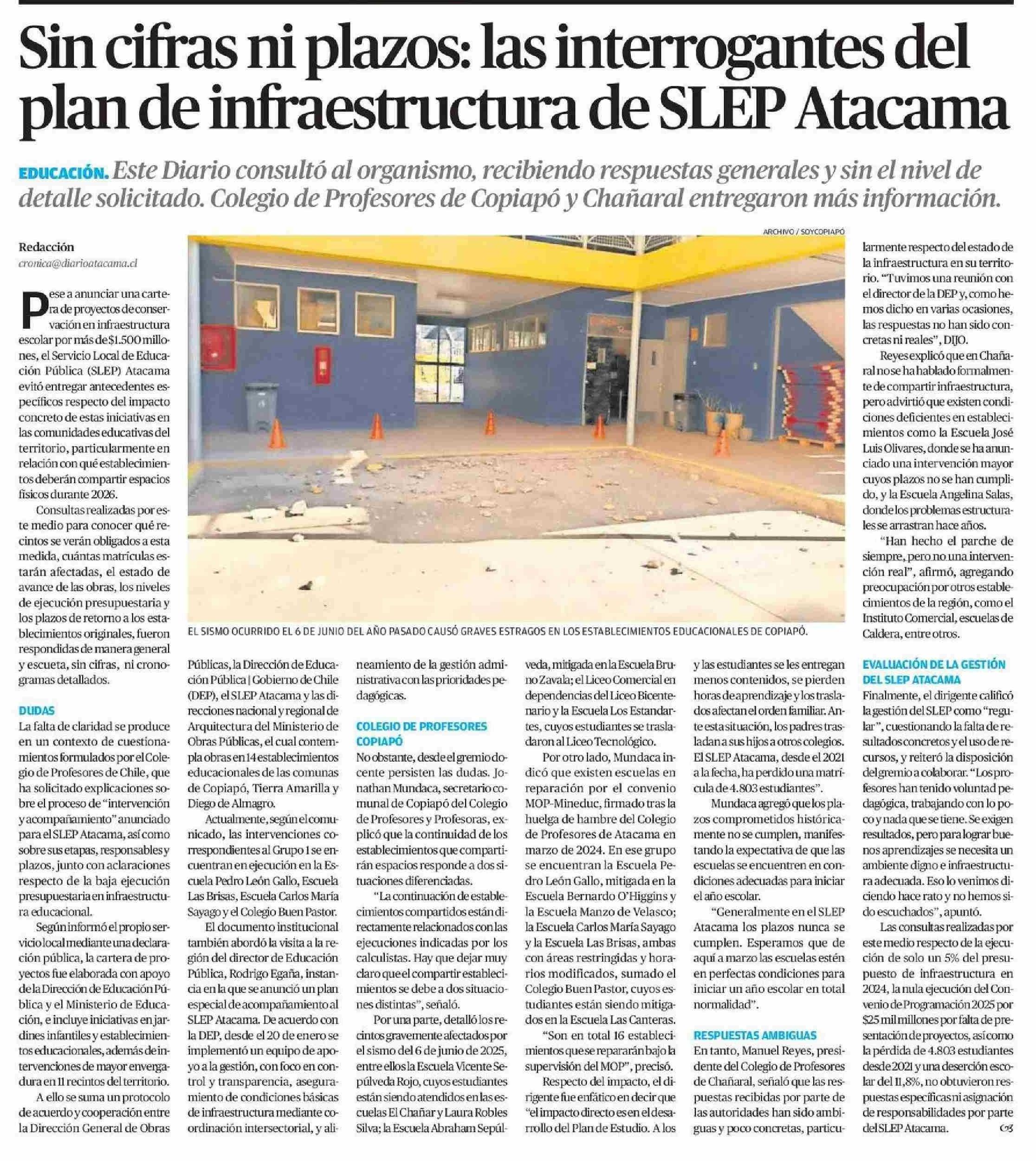 Sin cifras ni plazos: las interrogantes del plan de infraestructura de SLEP Atacama