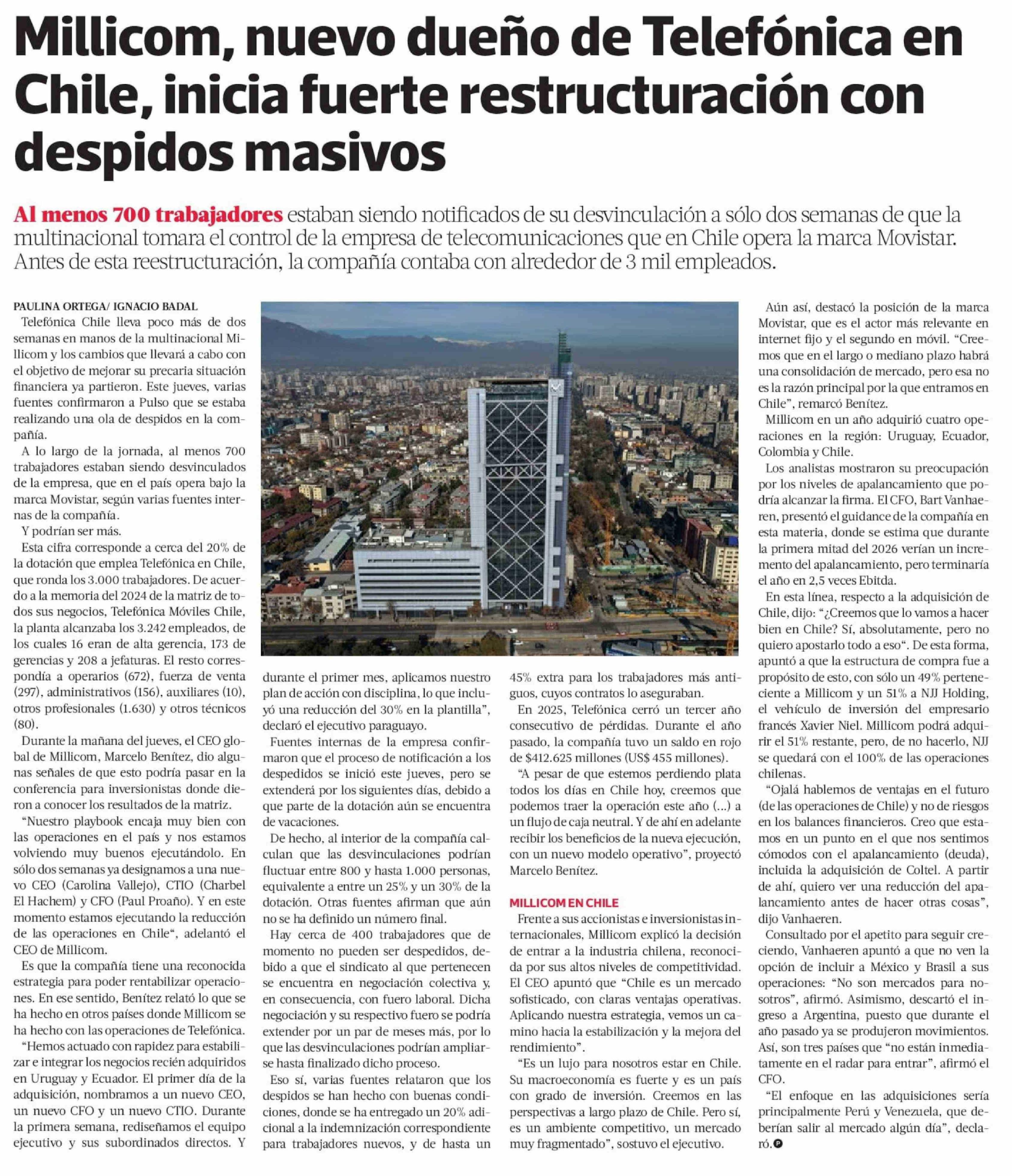 Millicom, nuevo dueño de Telefónica en Chile, inicia fuerte restructuración con despidos masivos